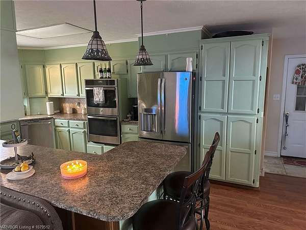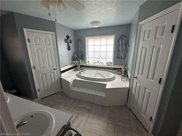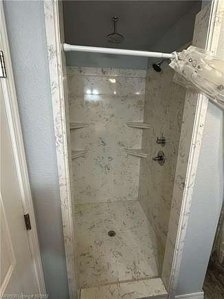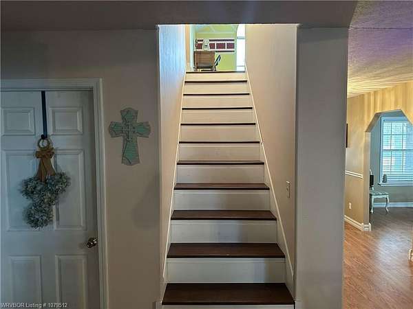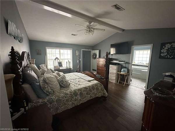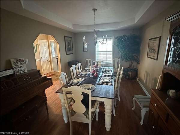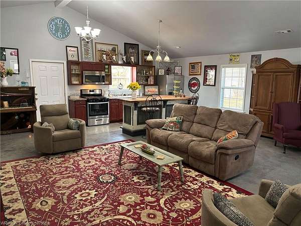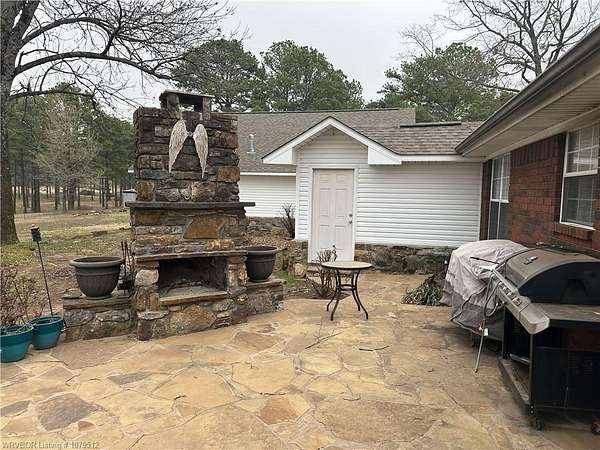 The best of both worlds; quiet and peaceful when you want it; and plenty of space to entertain when you don't. Sitting on 3.6 acres, the main house (2616 sq ft) has 4 bedrooms and 3.5 baths with a spacious living room and a formal dining area perfect for hosting family and friends. The attached, secondary living space (1192 sq ft) is ideal for a game room, mother in law suite, or potentially a studio style rental space. This space has an open plan with a walk in closet, kitchen area, and a full bathroom with a marble shower. The flagstone patio features a beautiful rock fireplace and hot tub which conveys. The property includes a 20'x20' building and an 8'x16' storage shed. The property line splits the stocked pond that is jointly owned by the neighboring property (see photo). Close to schools, Interstate 40, and only minutes from downtown Ozark.