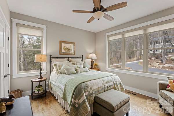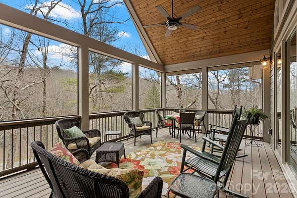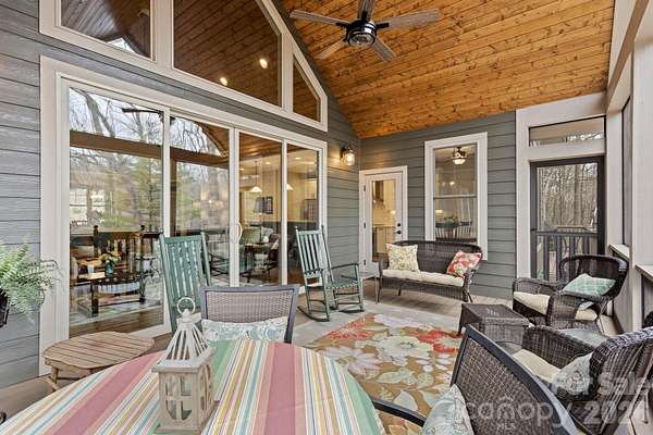 Architectural Masterpiece in Prestigious Kenmure. Absolutely stunning and exquisitely designed one-level home with three en-suite bedrooms, three full baths, two powder baths and a bonus room, beautifully situated on a private 1.5 acre corner lot in prestigious Kenmure, a gated golf course community. This exceptional residence offers a rare opportunity to own a true architectural masterpiece where timeless design meets modern luxury living with exceptional craftsmanship and thoughtful details throughout. A welcoming covered front porch with Trex decking and tongue-and-groove wood ceiling leads to the inviting foyer featuring a solid wood door with transom and sidelights. Inside, the fantastic open floor plan showcases random-width hardwood floors, vaulted and tall ceilings, and seamless flow between living spaces. The impressive great room features a tongue-and-groove stained wood cathedral ceiling, dramatic wall of windows- that lead seamlessly to the fantastic screen porch- and a striking floor-to-ceiling stone gas fireplace with reclaimed wood mantle and stone hearth flanked by custom built-ins. The great room opens to a gourmet chef's kitchen with quartz countertops, tile backsplash, shaker-style cabinetry, breakfast bar with pendant lighting, high-end stainless appliances including a dual gas range with hood, additional wall oven and microwave, and a spacious walk-in pantry complete with built-in file cabinet. The adjacent breakfast room offers easy access to both the screened porch and open deck. The elegant dining room features a beautiful tray ceiling and open design providing wonderful spaces for gathering. The luxurious owner's suite features a tray ceiling, private deck access and a spa-inspired bath with tile flooring, double vanity with granite countertops, soaking tub, and beautiful tiled shower with pebble floor and built-in bench. The designer walk-in closet with custom built-ins and island leads directly to the well-appointed laundry room with sink, cabinetry, granite counters, and built-in ironing board. The main level also offers a stunning study with glass French door entry with built-ins, plus two beautifully appointed en-suite guest bedrooms and a powder bath. The upper-level bonus room with half bath provides the perfect den, media room or flexible living space. Outdoor living is exceptional with a cathedral tongue and grove stained wood ceiling screened porch, open Trex decking, covered front porch and multiple cozy sitting areas surrounded by nature. Ideally located close to the front gate and community amenities, this remarkable home offers privacy, luxury and the very best of mountain living.