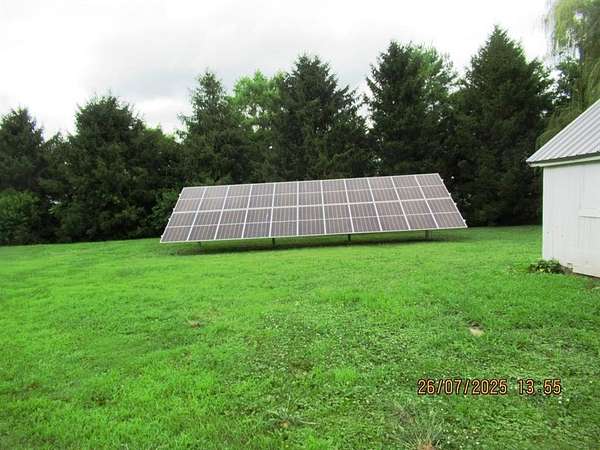 2.5 acre acreage on hard surface road. Fenced and gated. 3 bedroom, 2 bath home. Solar array and will be paid off at closing. Big savings on electrical. Backup LP Generator which starts once a week on Sunday and runs for 20 minutes, so always ready to go. Outside wood burner to assist the furnace. If you like control over your utilities you are in luck with this acreage. Many walnut trees, on fruit tree and a Beautiful Weeping Willow. 24 hour notice.