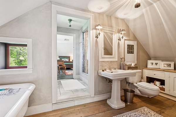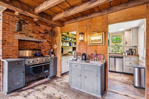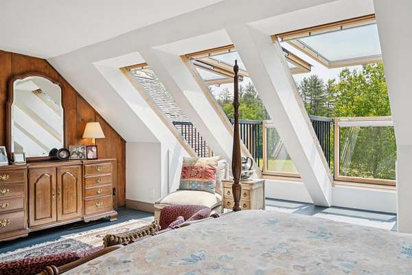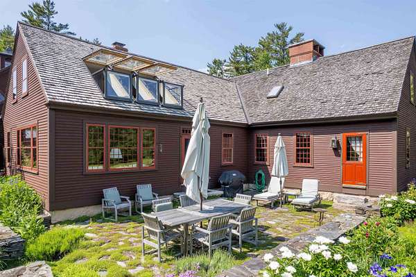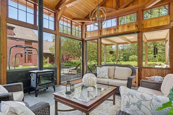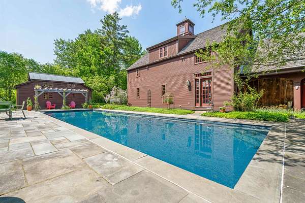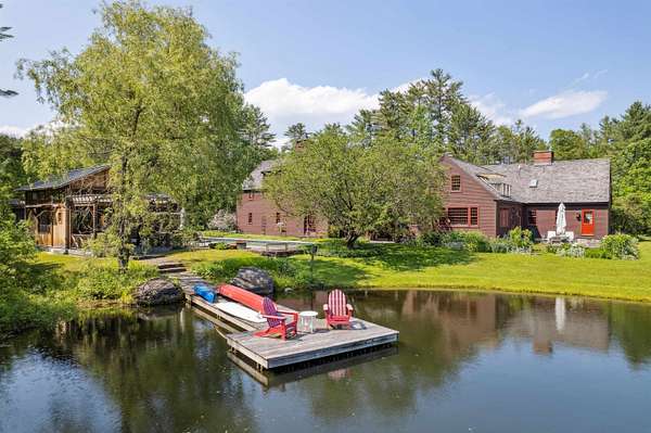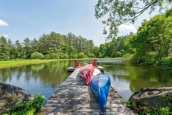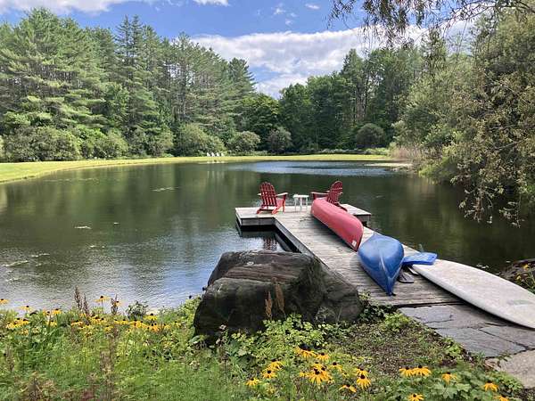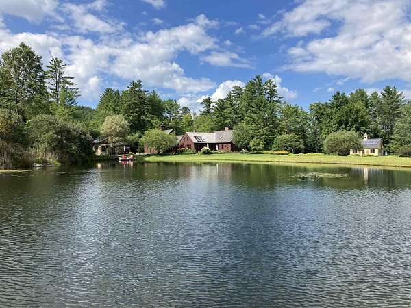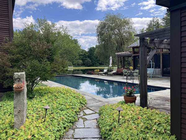 An exquisite, private retreat for artists, writers, nature-lovers, composers or simply as a quiet, serene getaway gathering house on 66 stunningly beautiful acres with stone walls, gardens, patios, open lawns, a beautiful swimming pond, in-ground heated saltwater pool with stone patio, and a breathtakingly beautiful outdoor screened pergola. The residence was constructed using reclaimed frames from several historic hand-hewn cape homes built on a modern foundation with modern mechanicals. The home features antique period door hardware, hinges and locks throughout - and hand hewn beams and wall panel boards (some are 2 feet wide). Other features include 12-over-12 wavy glass windows, dutch doors (pantry and study), 3 fireplaces and 2 wood stoves. Other common spaces include a living room, kitchen, formal dining room, sitting room, rec room and two offices and stone wine cellar. Separately a finished/heated "studio" building with a half-bath is now being used as a pottery studio. Excellent mechanicals include buried electrical lines, fiber optic internet, a solar array and an automatic propane backup generator. The mature gardens feature landscape lighting and many varieties of flowers, apple trees and blueberry bushes, attracting bees and hummingbirds. 64 of the 66 acres of land are professionally managed in a Current Land Use program, saving on taxes, with walking trails. And the property abuts the Hawks Hill Forest and trail network. SEE PROPERTY WEBSITE FOR MORE.