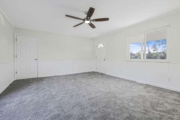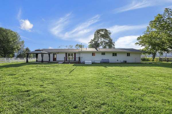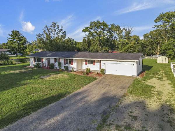 Welcome to this beautifully maintained ranch home in the desirable Pickerington School District, offering 3 bedrooms, 2 full bathrooms, and peaceful living on 2 quiet acres. Step inside to find new carpet and fresh paint throughout, along with a spacious layout that includes a large living room, separate family room, and an expansive eat-in kitchen featuring solid surface countertops, stainless steel appliances, and maintenance-free LVP flooring. The primary suite offers double closets and a spacious full bath with direct access to the family room. The unfinished walk-out basement provides ample storage space and houses the laundry area-perfect for future finishing if additional space is desired. Outside, enjoy the serenity of your own backyard retreat with a paver patio and pergola, large deck, and updated landscaping. For the hobbyist or business owner, the massive 45' x 36' detached 3-bay barn/garage/workshop is ideal for working on vehicles, storing equipment, or creating the ultimate workspace. There's also an attached 2-car garage with extra storage. Additional highlights include cement fiber board siding for low maintenance and a brand-new roof. This one checks all the boxes-schedule your showing today! *PLEASE SEE ATA REMARKS*