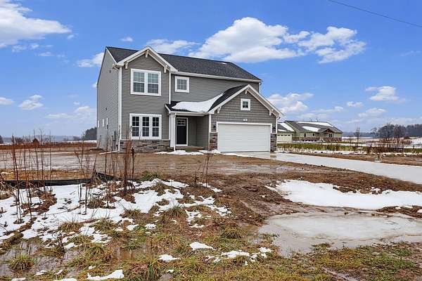 Completed new construction home move in ready NOW in Gibson Valley Farms, located in Thornapple Kellogg school district. RESNET energy smart construction will save owner over $1000 yearly and has 10-year structural warranty! This home on average is 43 years newer than similarly priced sold homes in the area. Welcome home to over 2300 sq. ft. of open floor plan. The front entry greets guests and leads past a den, which will have French doors, and a powder bath, into a large great room, open to dining nook and kitchen. Dining nook has sliders out to a 10x10 deck, perfect for entertaining. Kitchen will feature white cabinets, center island with pendant lighting, quartz counters, tile backsplash and SS; dishwasher, range and micro hood.