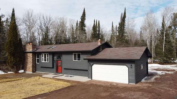 This newly remodeled split-entry home sits on 9.5 beautiful acres and offers high-quality materials and thoughtful updates throughout, all within convenient commuting distance to the Twin Ports. The main floor features a beautiful kitchen with abundant cabinetry, a dining area, a spacious sunken living room, two bedrooms, and a full bath. The lower level provides easy access from the attached two-car garage and includes a large rec room, a cozy sunken living room, a third bedroom, a second full bath, and plenty of storage space. With two fireplaces adding warmth and charm, along with a new well, access to Morris Creek, and a nice deck perfect for relaxing or entertaining. This move-in-ready home combines comfort, space, and peaceful country living all within minutes of Duluth & Superior.