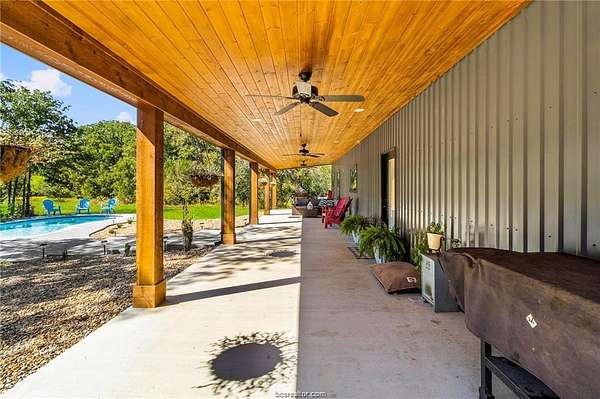 Country Living at Its Finest! Escape the hustle and bustle to this remarkable 48-acre property, where country living, modern comfort & outdoor adventure come together. Located just 35 minutes from Bryan/College Station, this 2024 built home is perfect for equestrians, hunters & anyone seeking a private rural lifestyle. The beautifully designed 2,260 sq ft home offers 3 spacious bedrooms, 2.5 bathrooms, and an upstairs bonus room. Inside, you'll find wide plank luxury vinyl flooring, granite countertops, an oversized island & stainless steel appliances. The open-concept layout is cozy and efficient, blending rustic charm with modern design. The private primary suite features a large walk-in shower, a garden tub & separate vanities. Step outside to your own slice of paradise with a huge covered back porch overlooking the sparkling pool and spa which provides a place to relax enjoying the surrounding views. The 2,880 sqft metal shop offering 2,016 sqft enclosed and complete with a bathroom makes an excellent workshop, man cave, or equipment storage area - a versatile space with endless possibilities. This property is also a hunter's dream. Abundant wildlife including trophy-sized white-tailed deer. With mature hardwoods and natural habitat throughout, it's perfect for hunting, wildlife watching, or simply soaking in the natural beauty. Whether your dream is peaceful country living, agricultural use, or recreational freedom, this ranch offers an incredible opportunity.