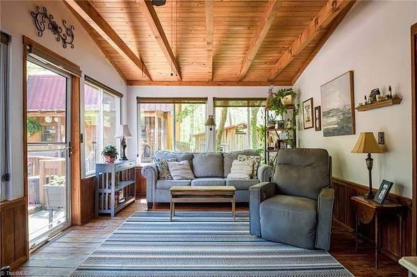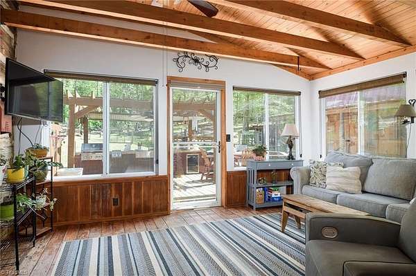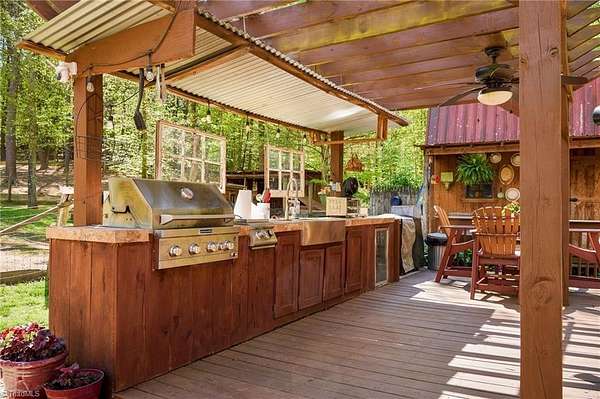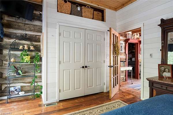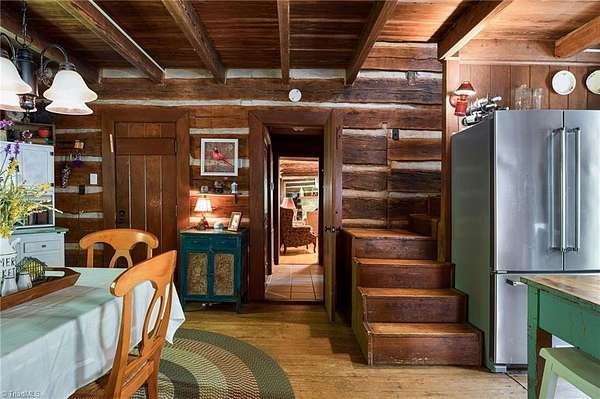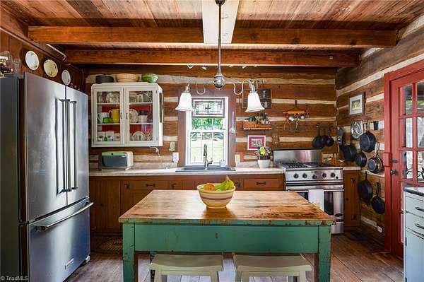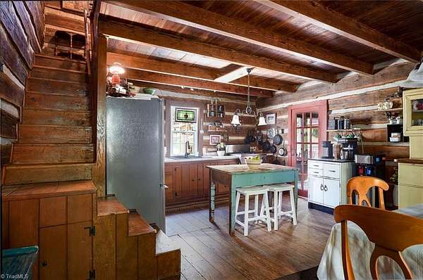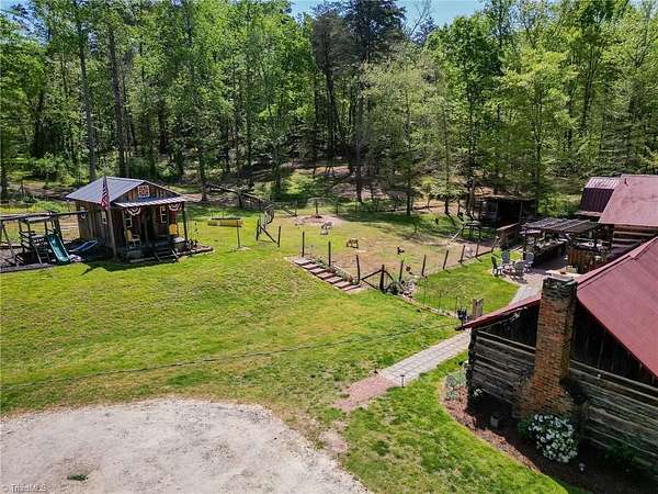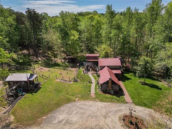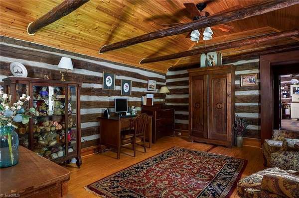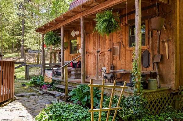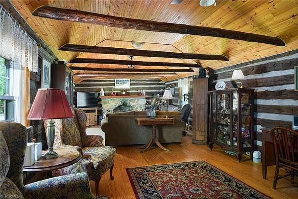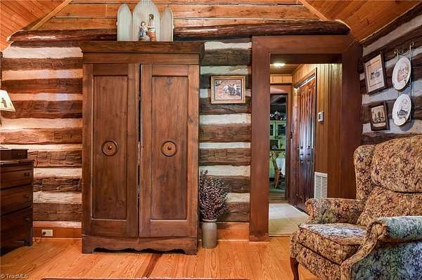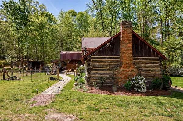 8.64 acres in the heart of Lewisville offering a rare blend of land and location! Tucked away among mature trees, this log home combines natural surroundings with multiple detached structures creating a private secluded setting that feels removed from it all while still within reach of daily conveniences. The historical home circa 1798 showcases authentic log construction, galvanized metal roof, and multiple gathering areas that create a comfortable, lived-in feel. A huge outdoor kitchen, porches, and scenic trails invite you to slow down and take in the ambiance. Plenty of parking and open areas around the home along with multiple wired and plumbed outbuildings, gardens, and coral. Flexibility for recreational hobbies, room to expand or simply enjoy as it is. The acreage extends beyond the immediate homesite, offering a mix of wooded land, creek and open pockets that add to the sense of privacy and potential. A property with character, space, and options for how you want to live.
