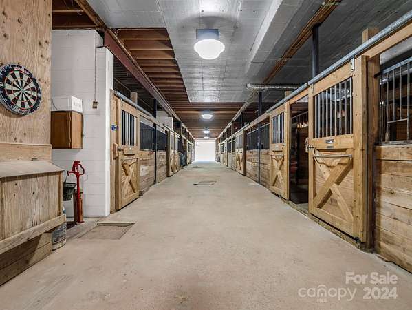 Flood Zone X (Minimal Flood Risk). Incredible 240 acre farm in Buncombe County with breathtaking mountain views for miles, including Mt. Pisgah! This meticulously maintained property has approximately 1.5 miles of paved driveways, 6+ miles of maintained trails for hiking/horseback riding/ATV use, a 17-stall barn with tack room, a 3-BR barn apartment, hay storage, a pond, a pole barn, a 3562 square foot main house, and a mix of cleared pastures and woods. The main house has an elevator, 2 fireplaces, large bedrooms, and some of the best views in Western North Carolina from the covered porch and main level rooms. The barn apartment has a 2-car garage, 1856 square feet of recently renovated living space, and amazing views from the deck. There are multiple building sites that will also have spectacular views. A rare offering for such a large tract so close to Asheville, this private estate is ideal for equestrian use, events, hunting, and more. Gated road for complete privacy and security.