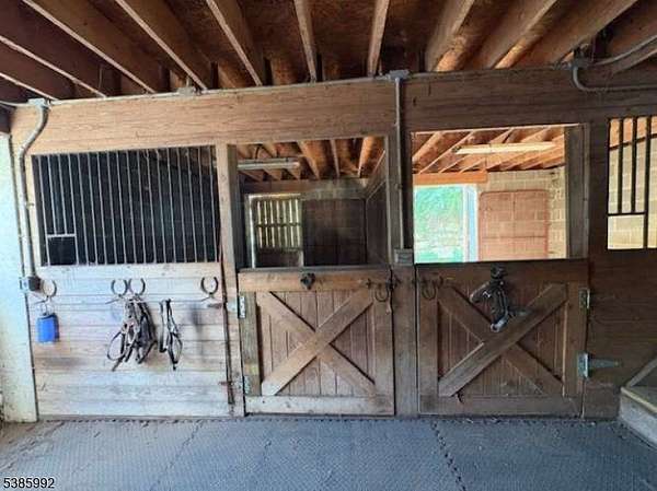 Welcome to Dapple Grey Close, located on one of Tewksbury Township's most picturesque roads, yet only 10 min to I78 and commuter rail, convenient to restaurants, shopping and the state's finest schools. Drive up the paved driveway, past the fenced riding ring to end at circular drive in front of the main house and stable.Relax on the covered front porch enjoying the stars on a summer's night or the changing colors of the fall leaves. If you like to entertain, you will love this house. From the foyer, to your right is a formal dining room and to your left is the front parlor with a vaulted ceiling and skylights. The great room has a wood-burning stone fireplace and wet bar. The heart of the home is the kitchen, with a center island/bar, eat-in kitchen, extra height cabinets, and walk out sliding doors to the deck. The laundry room has a deep sink and cabinets. Upstairs is the MBR suite with vaulted ceilings and skylights. The MBa has a jetted soaking tub, shower, double sink vanity and bidet. The attached sitting room has a woodburning fireplace and balcony. There are two walk-in closets. 3 additional br are on the 2nd floor. In the basement is a finished room and a sliding glass doors to walk out to the back yard.You won't believe that the charming cottage next door is actually a horse barn, with two stalls and a tack room below and place to store your hay and tractor above. The barn is electrified with hot and cold running water and a heated tack room.