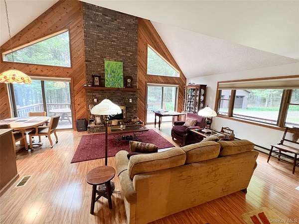 Located in the pristine Black Lake Estates in Bethel, NY, this chalet-style home is a great blend of comfort and country charm. The lake is private and loaded with Large Mouth Bass. Perfect for anyone who loves fishing, kayaking, or paddleboarding. The 3-bed, 2-bath home is a great size for an upstate getaway. The first floor is an open and inviting floor plan with a burning fireplace. Two bedrooms and one bath on the main floor with a master sweet and open loft upstairs. The full basement is unfinished with laundry. This is home, and the property is maintained and cared for, and would make a great primary or second home getaway. Minutes to Bethel Woods Center for Performing Arts and many shops and restaurants nearby. A perfect blend of being removed and private, yet still close to all the major attractions of the area.