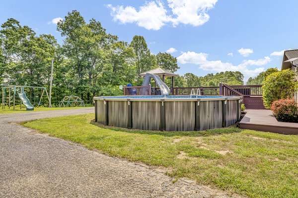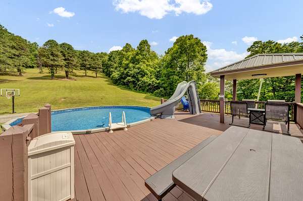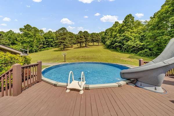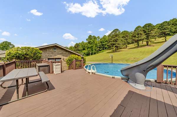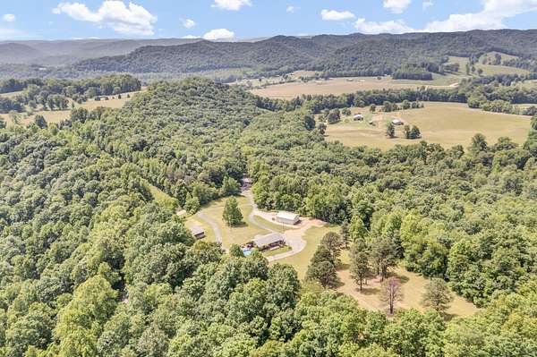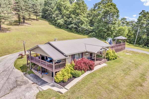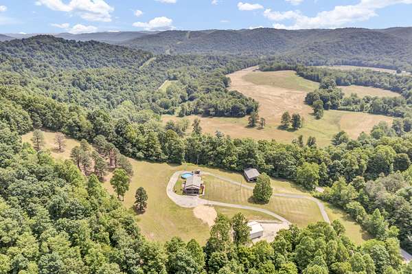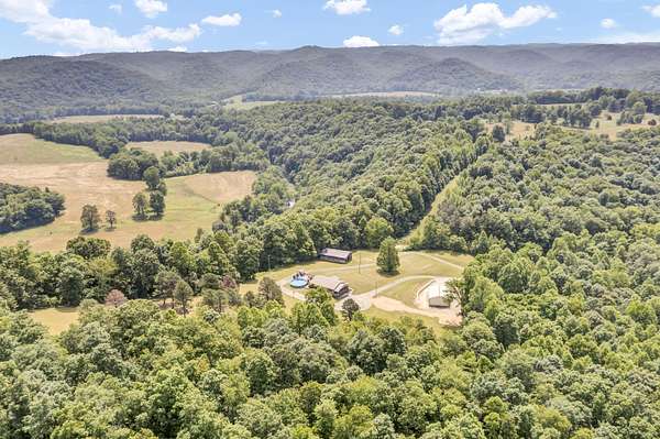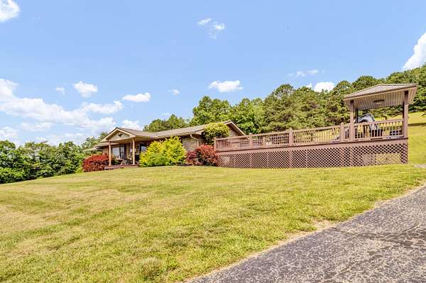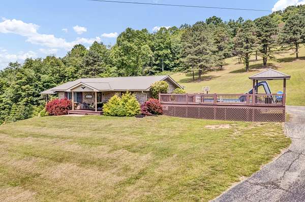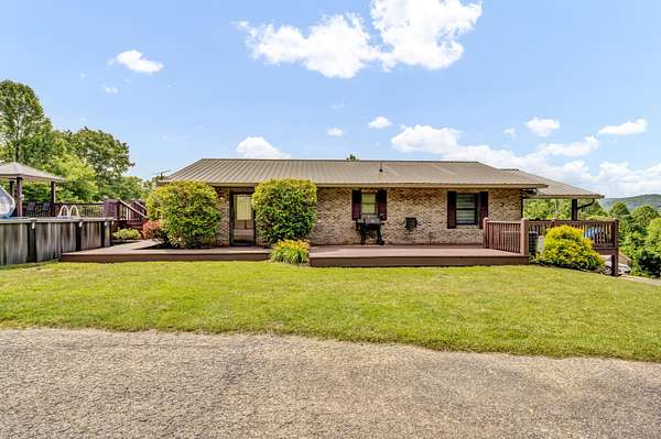 Come away from it all to your secluded oasis with this charming custom brick home nestled in beautiful foothills of the Appalachia. This outdoorsman's paradise boasts 60 beautiful and sprawling mostly wooded acres of premium white tail hunting property and plenty of ample space for all your other recreational adventures. The 4-bedroom 2 bath home is in pristine move in ready condition and features updated appliances, recently installed water heater, lovely ceramic tiled kitchen and bathrooms, and a newly upgraded septic system including a new tank and leach bed. With a complete attached wrap around deck, you can find yourself being able to take in all the beauty and tranquility surrounding you on every side. The above ground pool will be perfect for relaxing and cooling off after a hot summer day. The massive and freshly stained deck also provides the best spot for all your family get-togethers and cook outs. The list of amenities continues with an older but nice rustic barn and a large 1200 sq ft concrete floored and wired detached garage, plenty of space for all your toys and storage needs. Find endless possibilities here with this private retreat.