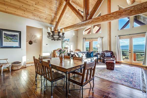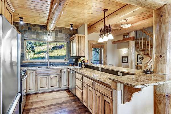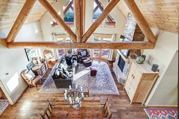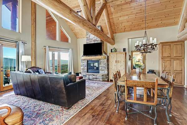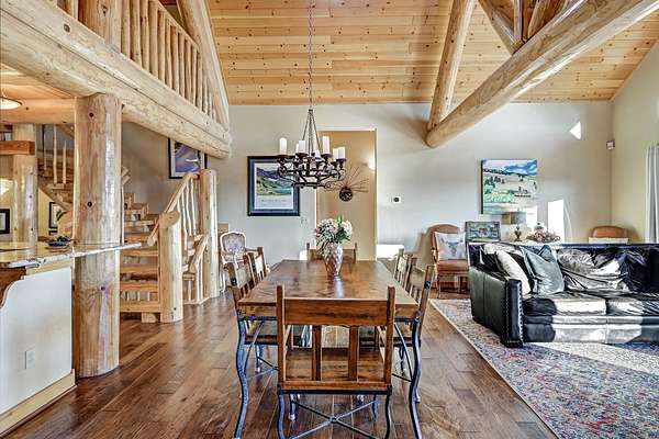 Stunning Custom Log Home with Panoramic Views in the Rocky Mountains! Experience year-round beauty in this exceptional 1.54-acre Rocky Mountain retreat, offering panoramic vistas and meadow views that transform with the seasons. This custom-built log home blends rustic charm with modern luxury, featuring stainless steel appliances, granite countertops, and in-floor radiant heat throughout. Designed for multi-family entertaining, the home includes three primary suites-strategically located for privacy-plus a large lower-level bedroom and a sleeping loft the kids will love. The open-concept living area flows seamlessly onto a spacious deck through two sets of French doors, offering direct access from both the living room and the main-level primary and guest suites. Downstairs, the unparalleled game room is a true showstopper-complete with a shuffleboard table, pool table and electronic basketball game. Adjacent to this entertaining space is a cozy den ideal for watching the game. The lower-level bathroom is a spa-like retreat featuring a freestanding copper tub and a large tile and glass shower-an unforgettable space that blends rustic elegance with luxury. Step outside to your own private oasis: a sunken, round-rock fire pit with circular seating, perfect for evening gatherings under the stars. This is more than a home-it's a destination. Take a moment as you walk through the outdoor living space to truly appreciate how special this property is. AAFPO Membership is $1,695 paid annually (valid May 2025-April 2026)