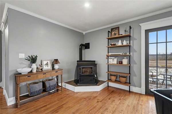 This updated 3-bedroom, 1-bath ranch offers the best of both worlds: peaceful country living and modern style. Sitting on 3 acres, this home has a newly remodeled kitchen and bathroom, hardwood floors, and a full basement...perfect for storage, hobbies, or future expansion. Cozy up to the pellet stove in the winter. As an added bonus, all appliances stay with the property. Step out onto the expansive back deck and soak in the beautiful view of the neighboring pond, the ideal backdrop for morning coffee and the sunrise. With plenty of space to garden, roam, or simply breathe, you'll love the privacy and tranquility here. All this serenity is just 2 miles south of Baldwin City, keeping you close to town conveniences while giving you that open-country feel. Fresh, peaceful, and move-in ready; this is the kind of place where you exhale and stay awhile.