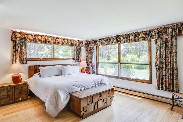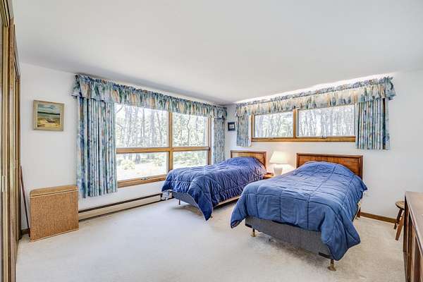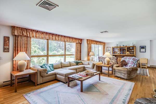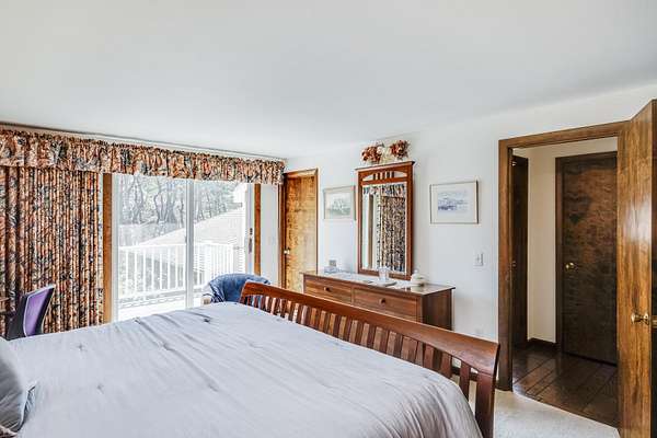 Set on a beautifully landscaped 3.67-acre lot surrounded by fruit trees and flowering bushes, The Highland House offers relaxation and outdoor enjoyment in the tranquil pines of North Truro. This charming three-bedroom, two-bath home is just steps from Highland Light, Highland Golf Links, and Coast Guard Beach, with a shuttle stop at the driveway for easy access to Provincetown. Inside, the bright open-concept living area flows into a well-equipped kitchen-perfect for daily living and entertaining. A versatile office den provides an ideal space for remote work. The upstairs primary suite includes a private bath and Juliet balcony with stunning lighthouse views. The first floor features a king bedroom, twin bedroom, and full bath. Owned solar panels currently cover the entire electric bill. Additional highlights include a whole-house generator, 5-bedroom septic system for future expansion, an attached two-car garage, and a large detached garage ideal for boats, campers, or extra vehicles. With air conditioning and a prime location, The Highland House is a rare opportunity to own a peaceful retreat in one of Cape Cod's most desirable communities.