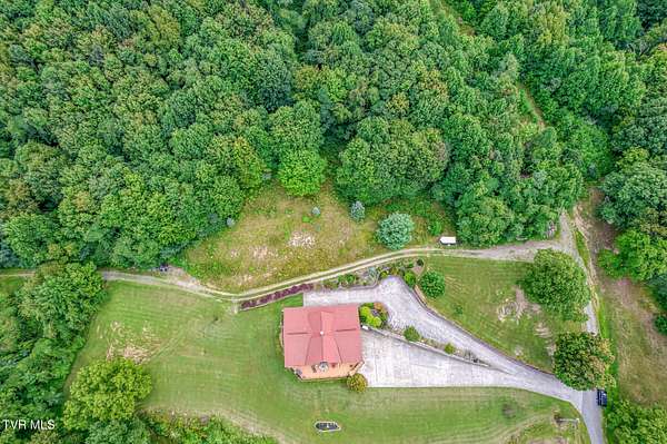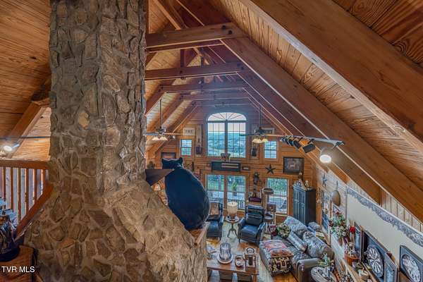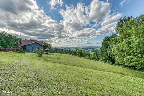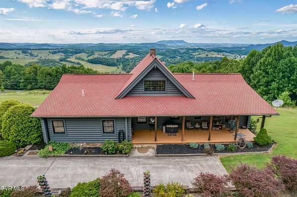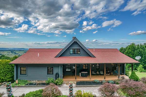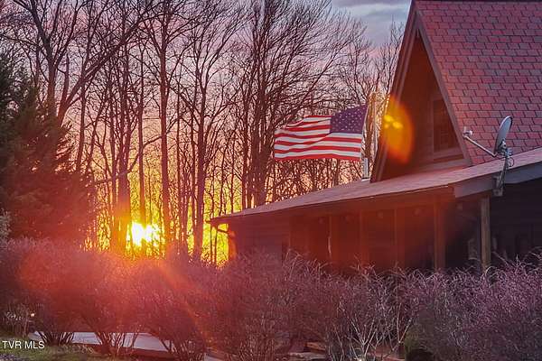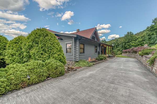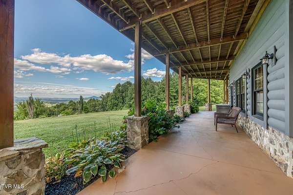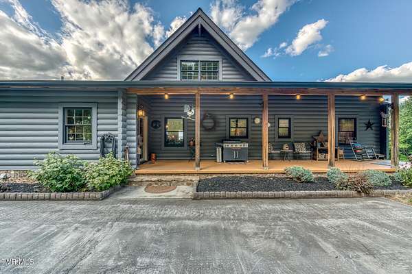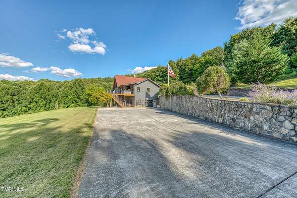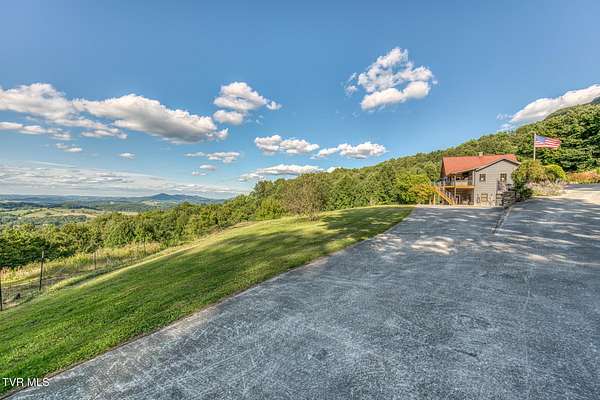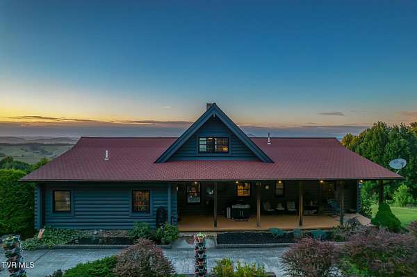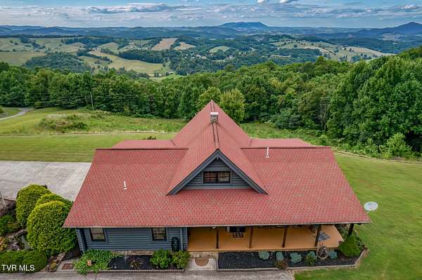 This one-owner, custom-built A-frame home constructed of pest-resistant cypress logs offers unmatched privacy, craftsmanship, and breathtaking panoramic mountain views. Featuring 4 Bedrooms, 3 full & 2 half Bathrooms, an optional 5th Bedroom, and over 4,200 finished square feet of living space throughout. This home was thoughtfully designed with efficiency and craftsmanship at its core - perfectly blending modern luxuries with self-sufficient living. The main level showcases soaring 26-foot windows at the front of the home that frame some of the most spectacular views in Southwest Virginia along with a dramatic stone fireplace as the focal point of the Living room. This home will make you feel like you're on vacation every day as you cozy up by the fireplace and take in the views with a beverage from the custom bar area that connects the Living and Dining rooms. The large Primary Suite includes french doors that open up to the deck and hot tub. The spacious ensuite has double sinks, a walk-in closet, jetted tub, and tile shower. Two additional Bedrooms and a second full Bathroom are located on the opposite wing of the home, allowing for additional privacy between the primary suite. A beautiful Kitchen with custom cabinetry, a Dining room, a mud/laundry room with direct access to the upper driveway and additional half Bath finish out the main level. Upstairs there is a large loft overlooking the Living Room with a full view of the mountains - this area could be used as an additional Bedroom, game room or even a cozy reading nook. The finished walk-out basement offers nearly 2,000 square feet with stained concrete floors, one additional Bedroom, a full Bath, half Bath, a large office, den, and storage space. A one-car garage and utility room complete the basement level. Enjoy outdoor living with a large wraparound deck, covered porch, hot tub, goldfish pond, and approximately 37 acres that border over 6,000 acres of Hidden Valley Wildlife Reserve. Explore ATV trails, hunt, or relax by nearby Hidden Valley Lake and The Channels. A large 48x24 building is located towards the bottom of the property and provides additional space for equipment, storage, workshop needs, or future projects. Another notable feature of the home is a traditional heat pump system that can be supplemented with a unique wood-burning hot water system that pumps heated water through the ductwork to heat the home and hot tub while saving money on electricity in the colder months. The home also utilizes spring-fed water that is UV sterilized and filtered into a 1,000-gallon underground tank then directly into the home - you can literally taste and see the difference in how clean and crystal clear this water is - you'll never want to go back to traditional water sources! Located only 20 minutes from Abingdon, this rare property offers the perfect blend of craftsmanship, seclusion, and mountain living. Furnishings and decor may remain with the home along with the 150 gallon fish tank and chicken coop. No drive-by's. Shown by appointment only.