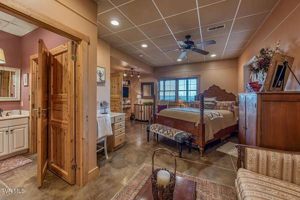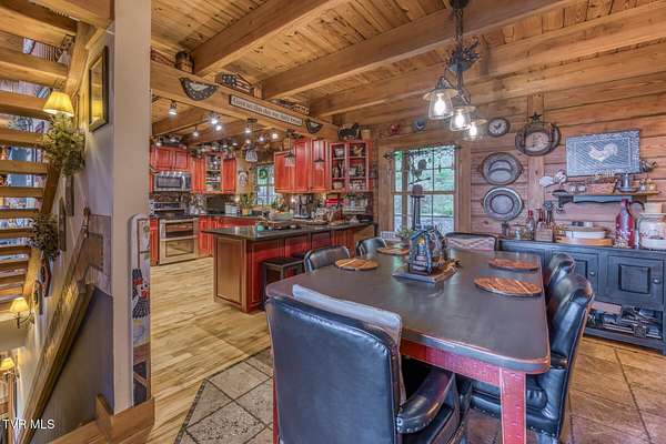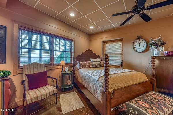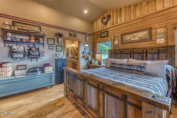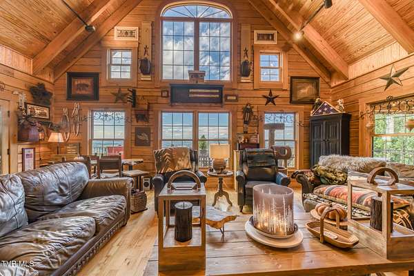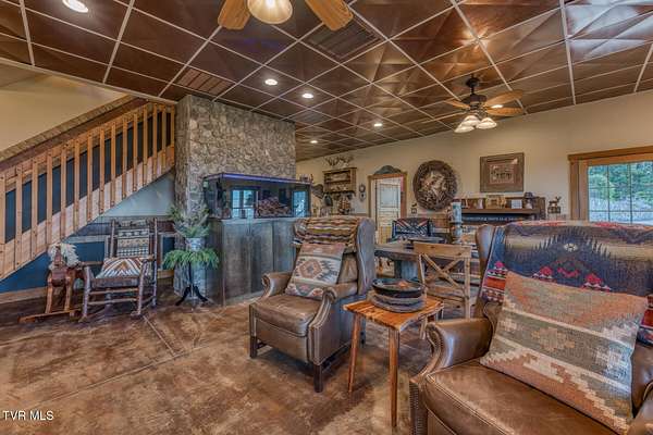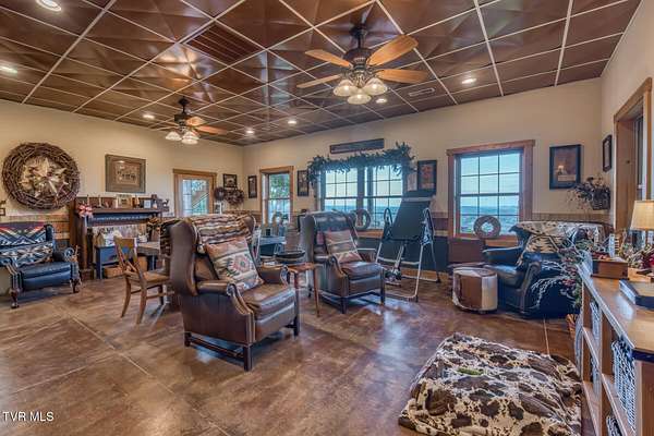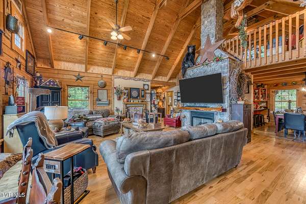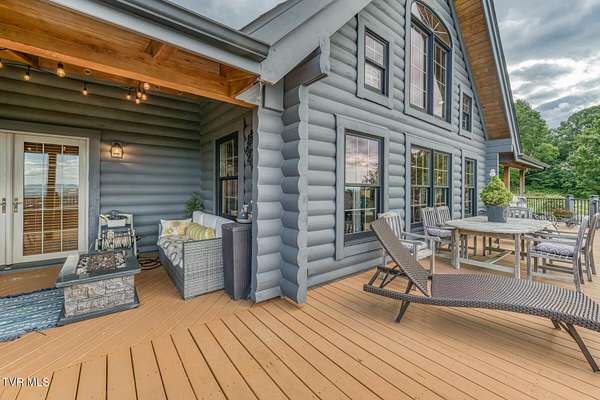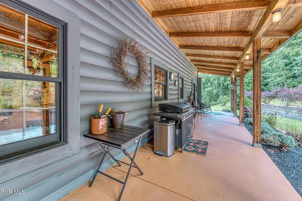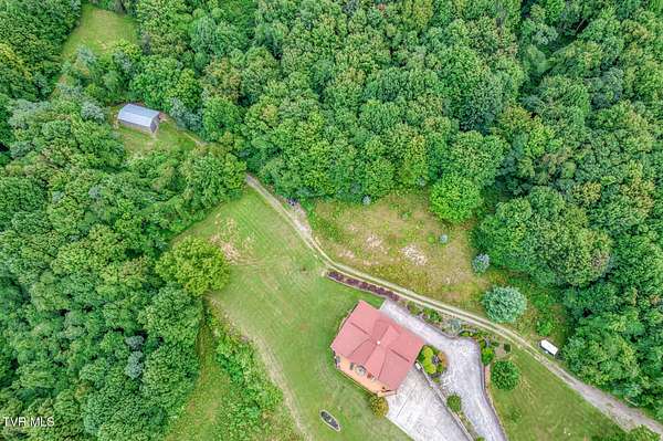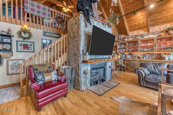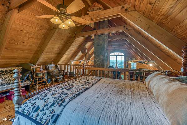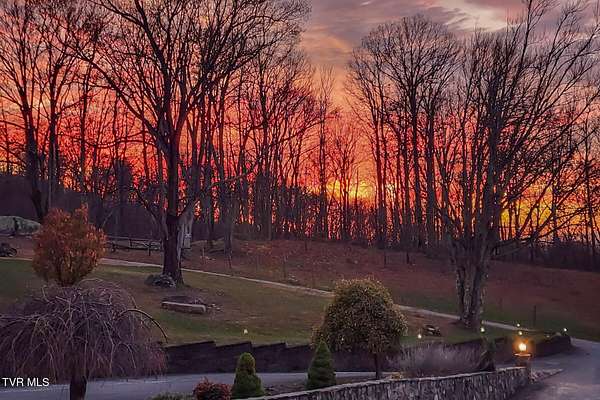 This one-owner, custom-built A-frame home constructed of pest-resistant cypress logs offers unmatched privacy, craftsmanship, and breathtaking panoramic mountain views. Featuring 4 Bedrooms, 3 full & 2 half Bathrooms, an optional 5th Bedroom, and over 4,200 finished square feet of living space throughout. This home was thoughtfully designed with efficiency and craftsmanship at its core - perfectly blending modern luxuries with self-sufficient living. The main level showcases soaring 26-foot windows at the front of the home that frame some of the most spectacular views in Southwest Virginia along with a dramatic stone fireplace as the focal point of the Living room. This home will make you feel like you're on vacation every day as you cozy up by the fireplace and take in the views with a beverage from the custom bar area that connects the Living and Dining rooms. The large Primary Suite includes french doors that open up to the deck and hot tub. The spacious ensuite has double sinks, a walk-in closet, jetted tub, and tile shower. Two additional Bedrooms and a second full Bathroom are located on the opposite wing of the home, allowing for additional privacy between the primary suite. A beautiful Kitchen with custom cabinetry, a Dining room, a mud/laundry room with direct access to the upper driveway and additional half Bath finish out the main level. Upstairs there is a large loft overlooking the Living Room with a full view of the mountains - this area could be used as an additional Bedroom, game room or even a cozy reading nook. The finished walk-out basement offers nearly 2,000 square feet with stained concrete floors, one additional Bedroom, a full Bath, half Bath, a large office, den, and storage space. A one-car garage and utility room complete the basement level. Enjoy outdoor living with a large wraparound deck, covered porch, hot tub, goldfish pond, and approximately 37 acres that border over 6,000 acres of Hidden Valley Wildlife Reserve. Explore ATV trails, hunt, or relax by nearby Hidden Valley Lake and The Channels. A large 48x24 building is located towards the bottom of the property and provides additional space for equipment, storage, workshop needs, or future projects. Another notable feature of the home is a traditional heat pump system that can be supplemented with a unique wood-burning hot water system that pumps heated water through the ductwork to heat the home and hot tub while saving money on electricity in the colder months. The home also utilizes spring-fed water that is UV sterilized and filtered into a 1,000-gallon underground tank then directly into the home - you can literally taste and see the difference in how clean and crystal clear this water is - you'll never want to go back to traditional water sources! Located only 20 minutes from Abingdon, this rare property offers the perfect blend of craftsmanship, seclusion, and mountain living. Furnishings and decor may remain with the home along with the 150 gallon fish tank and chicken coop. No drive-by's. Shown by appointment only.