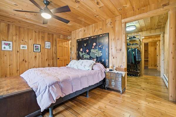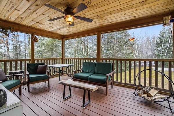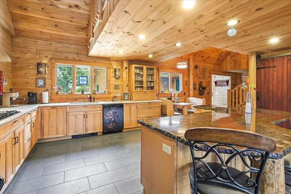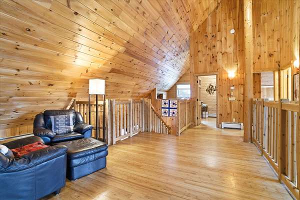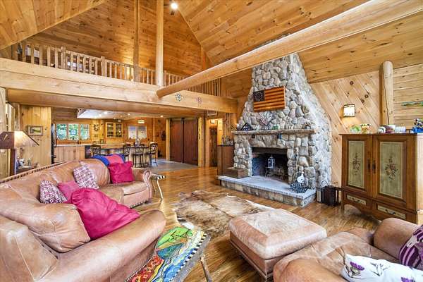 OFFER DEADLINE MONDAY 3/30 5:00PM Your base camp for all seasons in New Hampshire adventure awaits at 72 North Ridge Road, a completely custom Ward Cedar Log home masterfully constructed in 2013. Set on 4.12 private, wooded acres in Bradford, this property offers a rare blend of serene seclusion and world-class recreation. Just minutes from the skiing at Mt Sunapee, boating on Lake Sunapee, scenic motorcycle touring routes, and snowmobile trails less than a mile away. Designed for peak efficiency and longevity, the home features 6" diameter cedar log construction with foam insulation, a standing seam metal roof, and Andersen 400 Series windows. Soaring cathedral ceilings, hardwood flooring, and a magnificent floor-to-ceiling stone fireplace anchor the great room. The chef's kitchen boasts exotic riverbed granite counters imported from India, a massive custom-poured concrete island, and a spacious walk-in pantry. The first-floor primary suite includes a spa-like walk-in shower and a walk-in closet with access to the laundry room. Upstairs, a versatile loft leads to additional well-appointed bedrooms. The walkout lower level features a finished bedroom, bathroom, and pellet stove, plus an additional 1,358 sq ft. with strong in-law suite, expanded living potential, or extra storage. Outside, enjoy a screened-in porch, private bedroom balcony, wood-fired cedar barrel sauna, and cleared yard space. Ample room alongside the attached 2-car garage for your boat, RV, or other recreational toys. Snowmobile trail access is a mile away. Modern comforts include radiant floor heating, 200+-amp service (with an additional 240-amp line in the basement), and an 11-kW whole-house standby generator. Showings begin immediately by appointment. Open Houses: Sat 3/28 & Sun 3/29, 11–1.