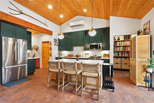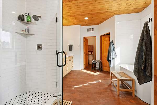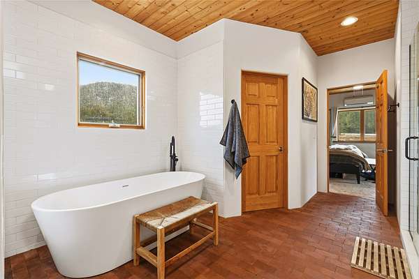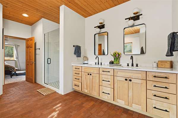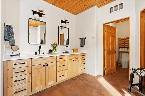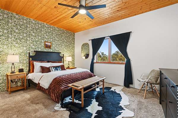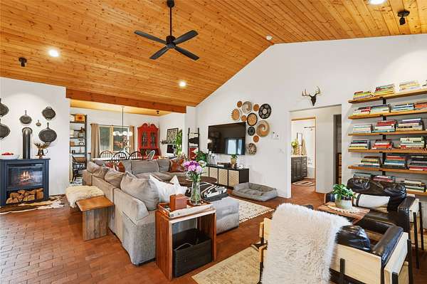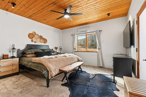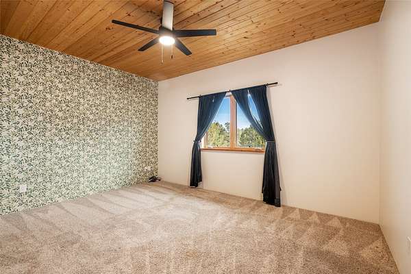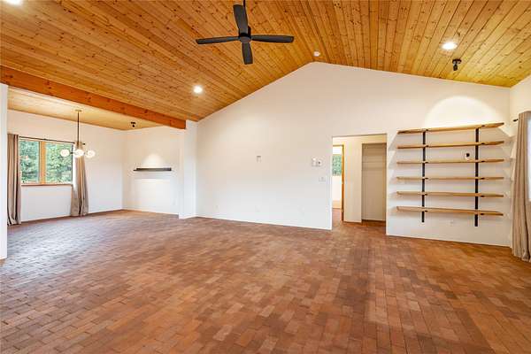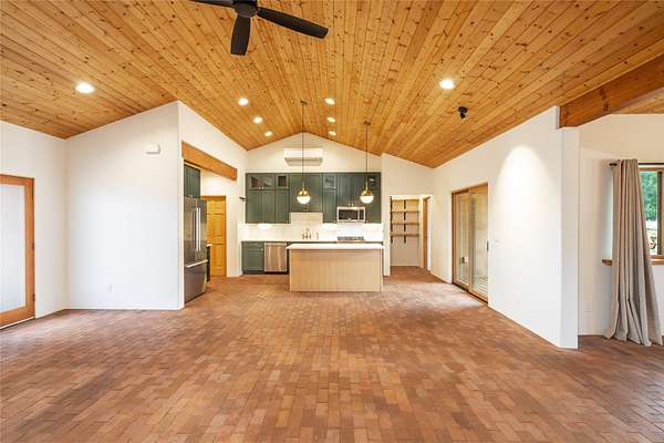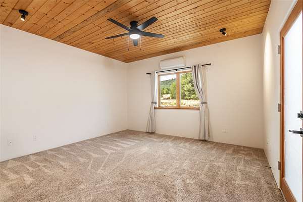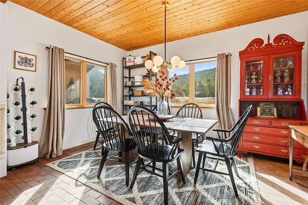 Freshly prepared for spring, this well-maintained property has been thoughtfully refreshed and is move-in ready. Recent updates include fresh interior paint, a newly installed septic system (March 2026) with a two-year warranty, deep-cleaned carpets, cleared personal property, and spruced raised garden beds. The sellers have recently moved out and are presenting a timely opportunity for the next owner. Located at the base of Rowe Mesa, this ranch-style home sits on approximately 3.7 acres of mostly level, usable land, offering expansive skies, mountain views, and a sense of rural privacy-all within an approximate 30-minute drive to Santa Fe. Built in 2021, the custom home features a modern ranch aesthetic with a pitched propanel roof, stucco exterior, and natural finishes throughout. The open-concept living and kitchen area includes island seating, a pantry, and access to the attached two-car garage. Interior details include brick flooring, wood cabinetry, subway tile accents, and wood-planked ceilings. The home offers three bedrooms and two bathrooms, providing flexible living options. Radiant in-floor heating and mini-split systems support year-round comfort. Exterior features include mature fruit trees and established raised garden beds. The property borders public lands associated with the Santa Fe National Forest, offering nearby access to outdoor recreation. This property presents a rare combination of newer construction, usable acreage, and a beautiful high-desert setting.