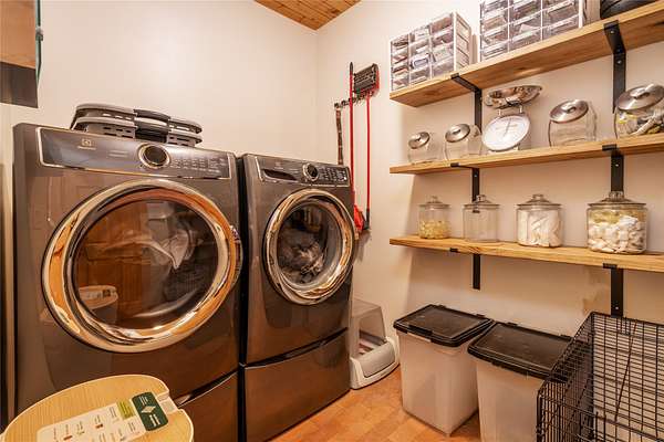 - Dishwasher, Disposal, Dryer, Gas Cooktop, Oven, Range, Refrigerator, Washer