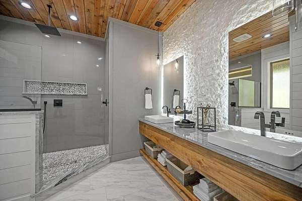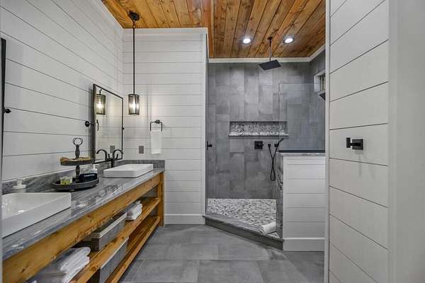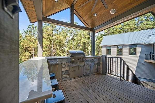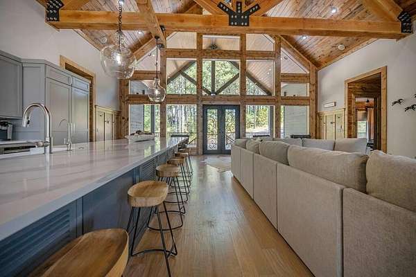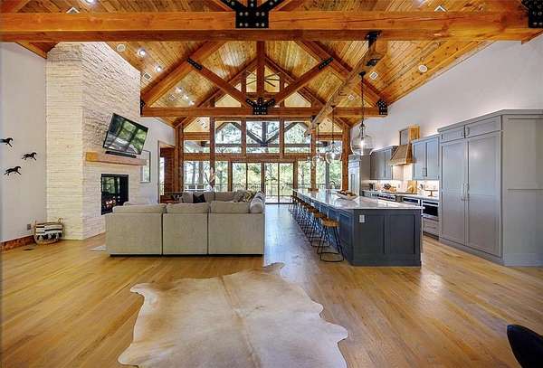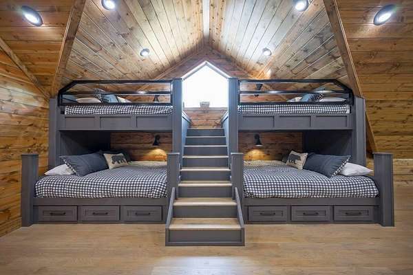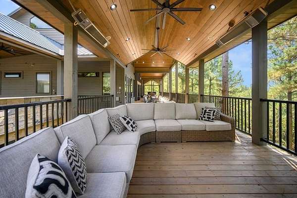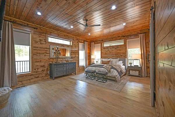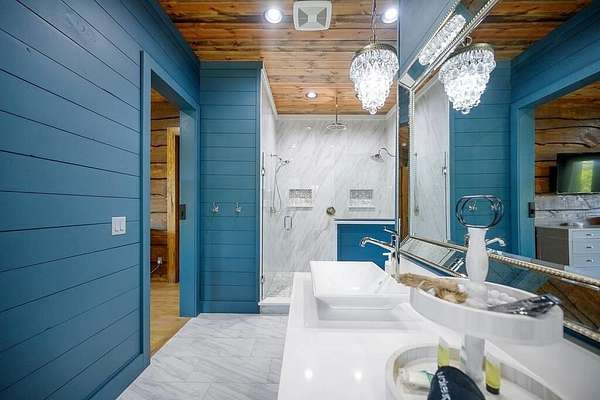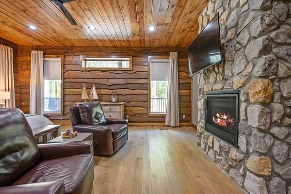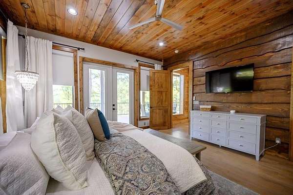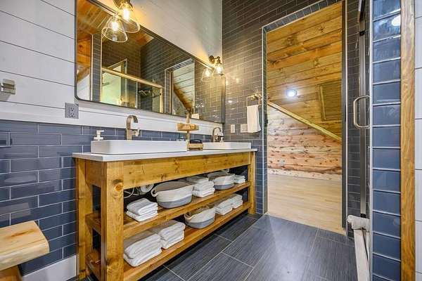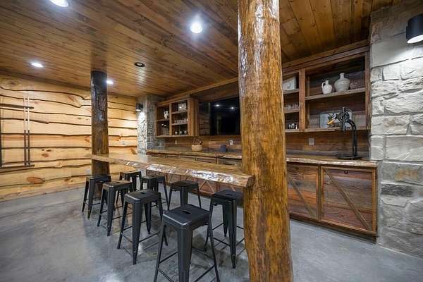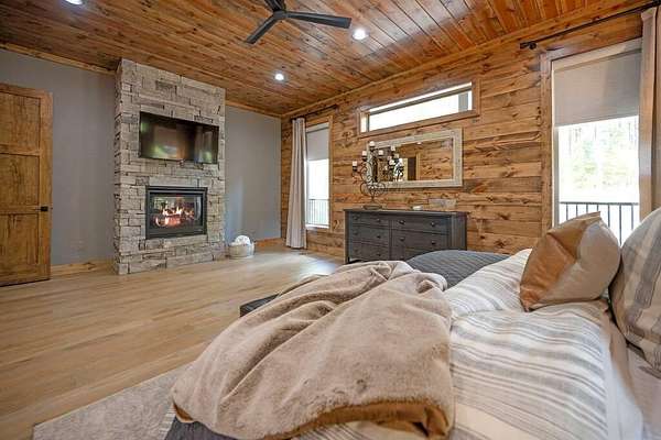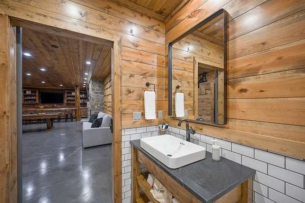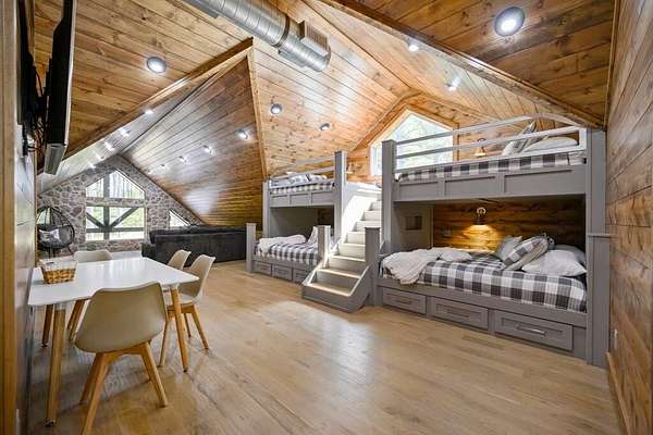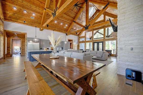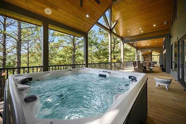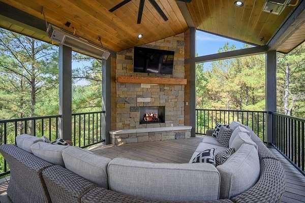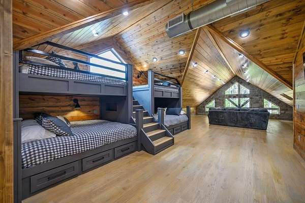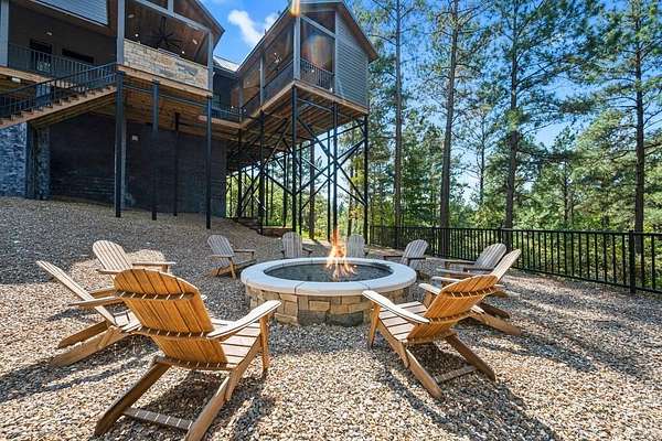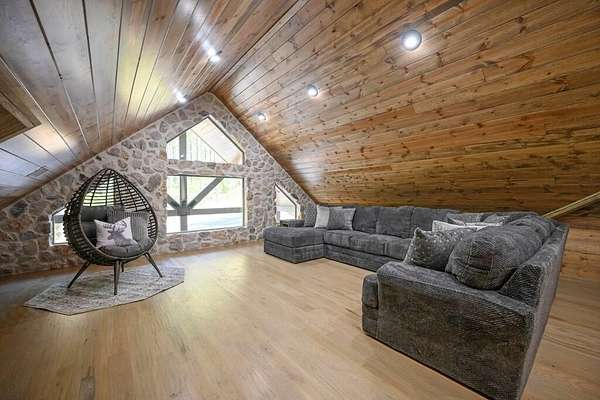 Welcome to Sweet Harmony Lodge, an exquisite retreat on 9 private acres in Hochatown. This cabin seamlessly blends luxury, comfort, and nature, designed to host 26 guests for family gatherings, corporate retreats, or a lavish getaway. Spanning 9 acres, the property features a flowing creek and a private half-mile trail, establishing it as one of Hochatown's most private and serene locations. This cabin impresses with stunning 40-foot vaulted windows, a floor-to-ceiling gas stone fireplace, and a layout integrating luxury with the natural surroundings. Inside, the lodge showcases four king suites with private baths, two bunk rooms with custom-built bunk beds, and a deluxe king sofa sleeper. Each suite is uniquely designed, featuring rock fireplaces and high-end luxury mattresses for comfort and style. The heart of the lodge is the oversized gourmet kitchen, fully-equipped with high-end appliances, an expansive island, and a custom dining table seating 16. The outdoor space at this fabulous cabin is equally impressive with a wrap-around deck that offers breathtaking views, an outdoor kitchen, two dining tables, and a fire pit area with Adirondack chairs that provide a perfect backdrop for relaxation. Sweet Harmony Lodge is not just a retreat but a valuable investment. Its location, amenities, and size make it an attractive option for rental income and reported as one of the highest revenue-producing properties in the area. Key features include: - 7 bedrooms, 7 private bathrooms, 2 powder baths - Comfortably sleeps 26 guests - Indoor and outdoor state-of-the-art home speaker system - Paved driveway with boat parking - Commercial icemaker, and closets - 5 gas fireplaces - 36-inch deluxe chef's range - Outdoor kitchen with a grill - Large hot tub and fire pit - Wooded half-mile walking/ATV trail - Pest misting system Sweet Harmony Lodge offers an unparalleled experience, combining nature's serenity with modern luxuries, ensuring every stay is memorable and enjoyable.