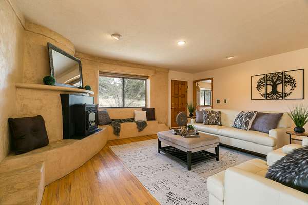 Experience serene living in this stunning 4-bedroom, 3-bath detached adobe home, nestled on 8.32 acres backing to open space. With 3,183 square feet of beautifully maintained living space, this energy-efficient property offers magnificent views and maximum privacy. Recent (2026) updates include beautifully resurfaced oak hardwood flooring, fresh paint, brush nickel faucets and door knobs, modern lighting, septic replaced (2025) and updated shower doors. Harness the benefits of solar power (220V in garage for electric car charging) in this super private oasis, perfect for those seeking comfort and efficiency in a breathtaking natural setting. NO HOA! Don't miss the opportunity to make this exceptional home your own!Schedule your showing today!