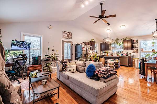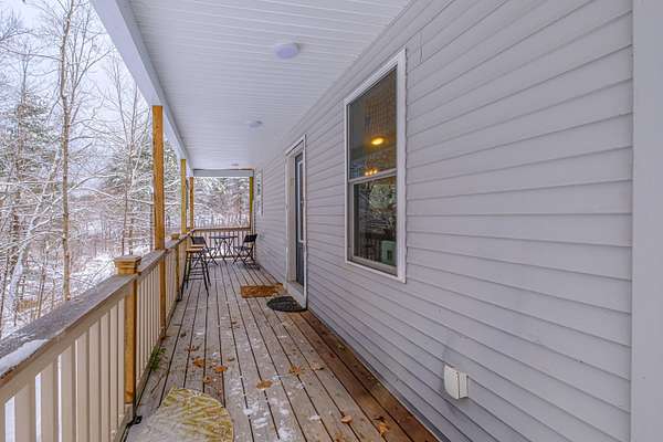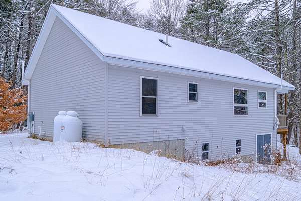 If you're looking for peace, privacy, and nature without sacrificing modern construction, this is the home for you! Built in 2021 and nestled deep in the woods on 4.6 acres, this home feels like your own private retreat. Sunlight pours through the windows, offering serene views of trees and surrounding nature in every direction with a flowing stream out back. Quiet mornings, birds chirping, and total privacy come standard. Inside, the open concept layout connects the kitchen, dining, and living spaces for easy everyday living and effortless entertaining. Single level living includes three comfortable bedrooms and a spacious, well appointed bathroom featuring a double vanity, separate shower, and soaking tub. The full basement offers tremendous flexibility with durable wall finishes and wide open space, perfect for storage now or future finishing for additional living area, a gym, or bonus room. Whether you're sipping coffee on the covered porch or enjoying the stillness of the woods, this home delivers the Maine lifestyle buyers dream about. The way life should be.