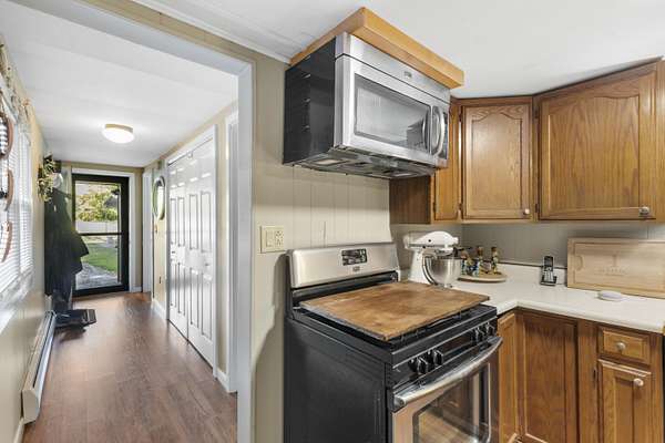 - Bar Fridge, Free-Standing Electric Range, Microwave, Oven, Refrigerator