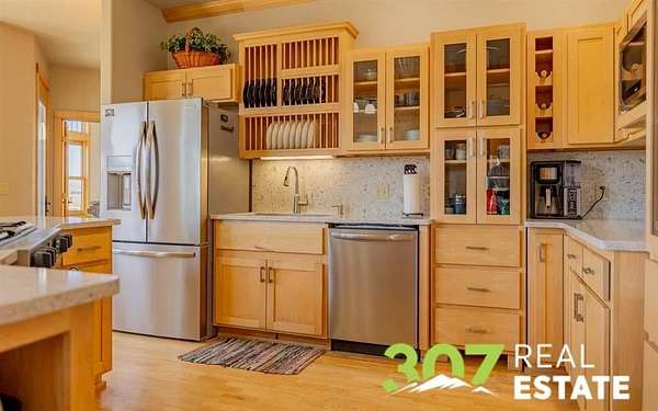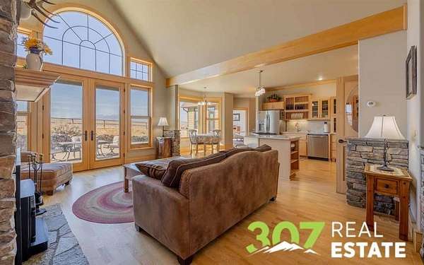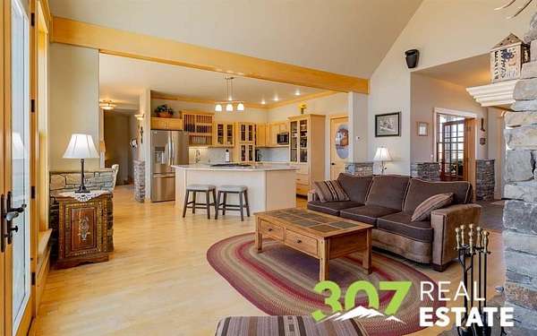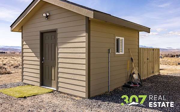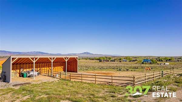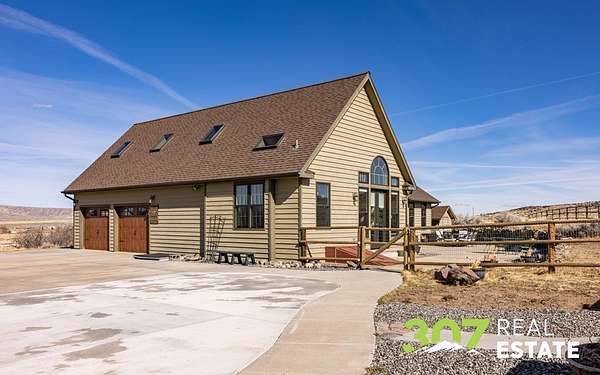 Experience unparalleled mountain views in every direction from this stunning 3-bedroom, 3-bath home with an additional loft and unfinished basement, situated on 12.08 acres in the Bighorn Basin of Northwest Wyoming. The property borders over 200,000 contiguous acres of BLM and state lands spanning Park and Big Horn counties, offering unmatched privacy while still being just 10 minutes from Cody and minutes from Cody Regional Airport. This custom home showcases exceptional craftsmanship throughout. The main-level primary suite with ensuite is separate from the other bedrooms for added privacy. Recent updates include new fireplace insert, new kitchen countertops and modern lighting and exterior stain to the home! Step outside to an expansive patio that seamlessly blends indoor and outdoor living — perfect for morning coffee or watching the sun set over the horizon. There is also a 1,500 sqft detached shop that provides ample space for toys, equipment, and separate area for entertaining or additional workshop space. The property is horse-ready with a lean-to, automatic waterer, sturdy fencing, and hay storage. Ride or hike directly onto BLM lands from your backyard — no trailer needed. Additional highlights include a newly built custom deck with lighting and power, ideal for enjoying the views of Carter Mountain, entertaining, or hosting a small event.