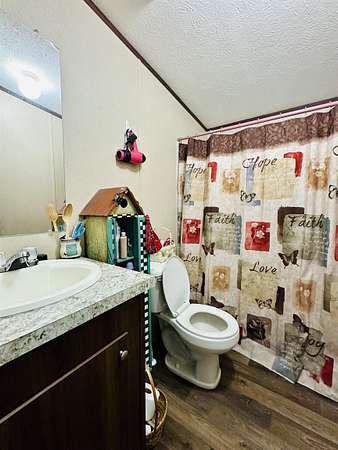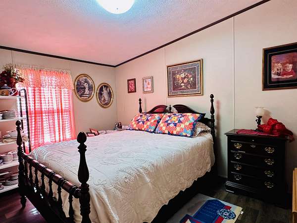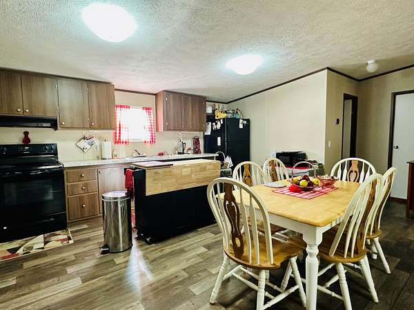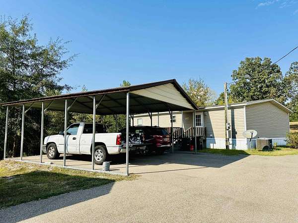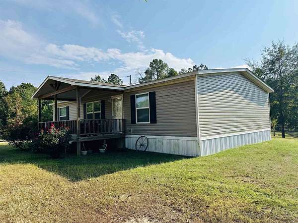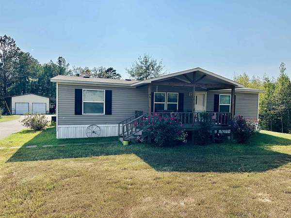 Escape to country serenity in this 3 bedroom, 2 bathroom double-wide manufactured home nestled on 4.5 peaceful acres! Inside, luxury vinyl plank flooring shines throughout, complementing the split floor plan's airy feel. The kitchen dazzles with sleek appliances and a convenient island for food prep and casual dining. Step outside to unwind on the covered front and back decks, perfect for nature watching and relaxation. A paved driveway leads to a spacious 2-car canopy carport, keeping vehicles sheltered from the elements. Additional outdoor features include a 2-bay shop complete with lean-tos for ample storage and project space and a small pond. With its tranquil setting and abundant amenities, this property is perfect for those seeking a relaxing country lifestyle. Schedule a tour to make this house your home!
