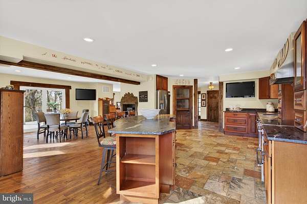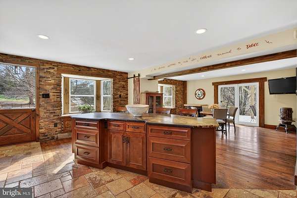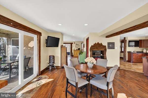 Your dream lifestyle awaits at 720 Hobbs Road, a 5 bedroom / 3.5 bath home situated on 3+ private acres in Wayne. This home exudes timeless charm, and every intricate detail tells a story. You will experience historic reclaimed and hand-forged materials, thoughtful upgrades, and a surprising feature at every turn. The main floor has a very flexible floor plan, you can use to suit your family's unique lifestyle, and every room includes a door to the outside. The chef's layout kitchen boasts special finishes such as titanium leathered granite, hand-forged Amish hardware, real stacked stone accents, reclaimed barn beams, a massive center island and walk-in pantry with antique door. You must visit in person to learn about every special detail in this room, as you will have stories to tell guests for many years to come. Kitchen, dining room, and living room flow effortlessly together with 360 degree views of the pool & gorgeous natural surroundings. A large family room with fireplace can be utilized as a media room, entertaining space for large groups, office, or perhaps a first floor in-law suite. Far from cookie-cutter...this home is perfect for someone that has a love of craftmanship and the outdoors. Plenty of accommodation for your grown-up toys - RV, boat, ATV, 4X4 or anything else that excites you. There is a dedicated line for RV charging, and a large 10X20 shed with garage door, 60amp electric, and water. Weekend excursions just got a lot more convenient...but you might find it hard to leave home with the sparkling pool & hot tub, large patio & multiple decks for entertaining, and the private wooded surroundings to explore (did someone say zip lines and tree forts?) There is even a garden area with electric and water hookups. The pool received new plastering, coping, and heater in 2023, with brand new fencing in 2025. The decks are newly constructed in 2025, and the roof/gutters were replaced in 2021. Even more features and upgrades are listed in the attached document - too many to list here! Upstairs, you will find a private Owner's Suite, a second "Summer Suite" with new deck, plus 3 more bedrooms and an updated hall bathroom. The laundry is also located on this floor for convenience. A partially finished basement with 9' ceilings is a perfect casual hangout space, and could be finished to your liking. The oversized 2-car garage will impress everyone from the skilled craftsman to the weekend DIY-ers...tons of workshop and storage/parking space, foam insulation & drywall, a heater & air filtration system, and a 220amp line for a table saw. Imagine arriving home after a long day, being welcomed by an attractive stamped concrete driveway, and the serenity of nature all around you. Finally, you and your family can enjoy the authentic lifestyle you've been longing for with this private oasis on 3+ wooded acres.