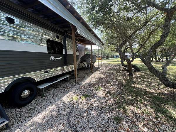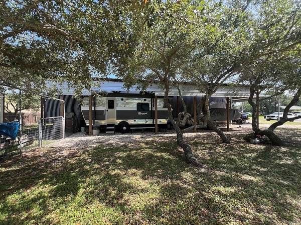 Est $545/moPull in and start relaxing- this 32' x 128' lot is already set up with a covered RV carport and city water and sewer! Located in the county where RVs and mobile homes are allowed, this property is shaded by pretty trees and makes the perfect full-time spot or weekend escape. The teal storage building in the back of the property is climate controlled- can be used for extra living space, office, or storage! Even better, you can also purchase the adjacent lot at 724 N Kossuth to double your space to 64' of frontage! Room for extra parking, a second RV, or just more elbow room to enjoy life by the beach. Set up and stay awhile- Rockport is waiting!