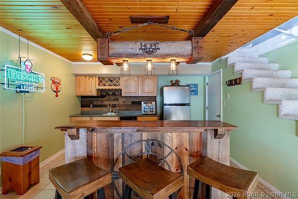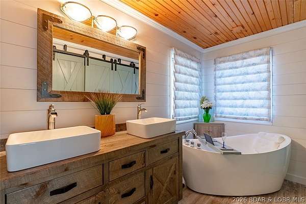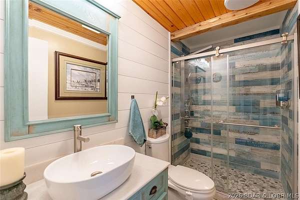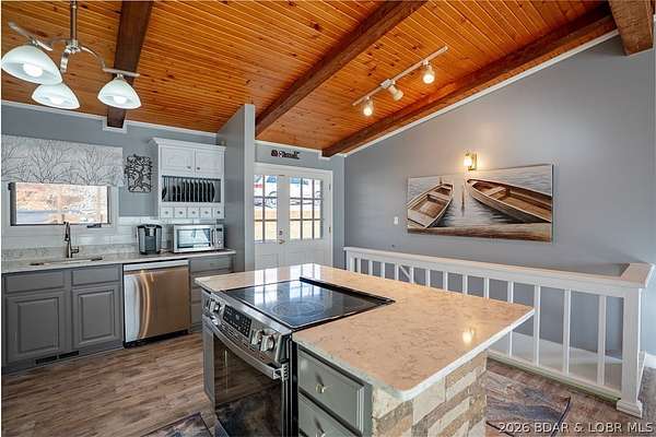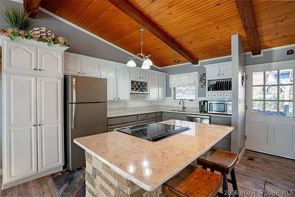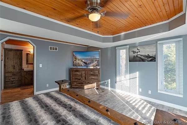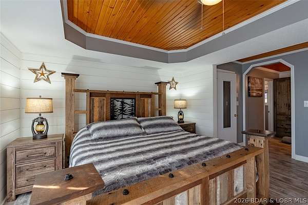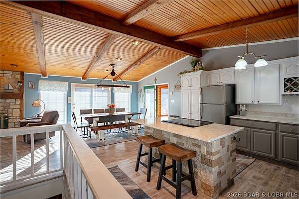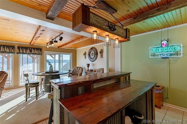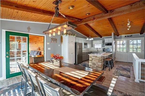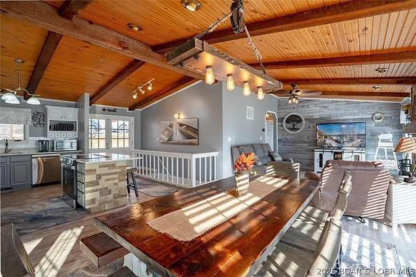 THIS IS LAKE PARADISE! MILE WIDE VIEW * REMODLED 2025 * SUNROOM * 30x40 SHOP w LOFT * NO NEIGHBORS IN SIGHT The interior remodel includes new LVP, updated kitchen cabinets, quartz island & stainless-steel appliances. The bathrooms feature stylish luxury touches w/ distinctive vanities & spa inspired multi-head shower systems designed for relaxation. The spacious master suite is a true retreat designed w/ modern rustic cabinetry, double barn door custom closet, & jetted tub. Take in the BEST SUNSETS on the oversized Fiberon deck that showcases stunning mile-wide views. The open concept lower-level living area boasts plenty of room to entertain w/ a wet bar, kitchenette where you are steps away from the lakeside covered porch. The impressively built 30x40 shop has RV-sized electric doors, premium insulation, efficient heating/AC, bathroom, plus a loft hangout. The 2-well dock includes 8k & 12k lb lifts, swim platform w/ Wetsteps ladder, high dive & slide. Add in a scenic firepit area, extra acreage and the rare luxury of not a neighbor in sight, all while being close to favorites like Big Dick's and Boondockz.