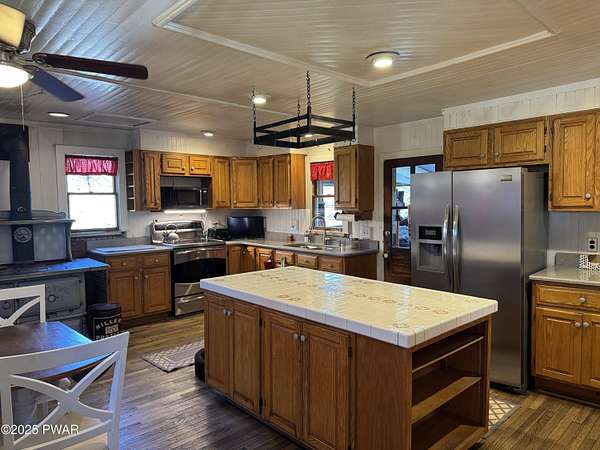- Ceiling Fan(s), Eat-In Kitchen, Laminate Counters, Tile Counters