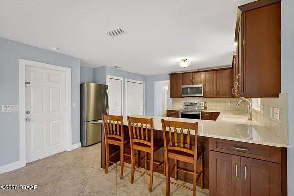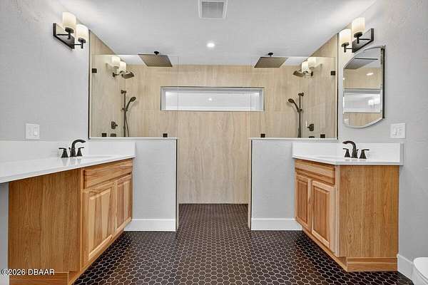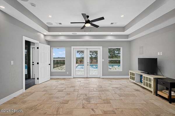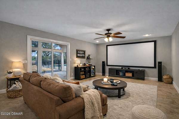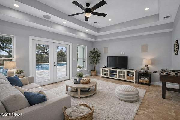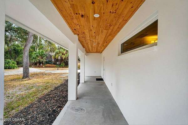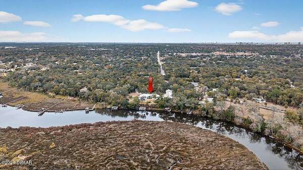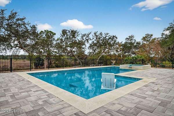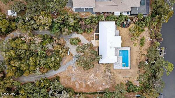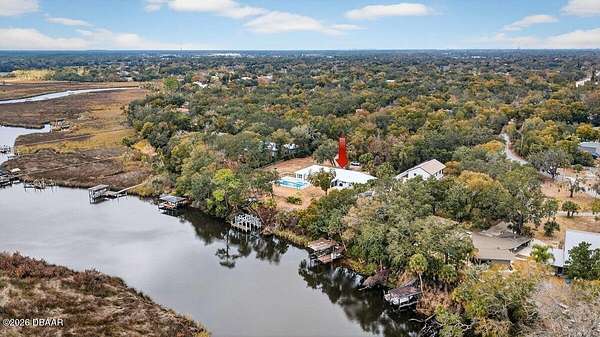 Elevated Spruce Creek Waterfront Estate | 2.28 Acres | 200' Frontage | Private Dead-End Setting A rare opportunity to own one of the highest-elevation waterfront estates in Port Orange, offering 200 feet of direct Spruce Creek frontage with protected park views and no rear neighbors. Privately positioned on 2.28 acres at the end of a quiet dead-end road, this exceptional property delivers rare seclusion, minimal traffic, and long-term value. A 2022 dock built with 50-year commercial-grade pilings provides durability and peace of mind for true waterfront living. The resort-inspired outdoor living area features a brand-new custom pool with a dramatic 45-foot lap lane, sun shelf, integrated bench seating, and an oversized spa-perfectly placed to capture tranquil water views and ultimate privacy. The residence offers 5 bedrooms and 5 full bathrooms, including two true primary suites-ideal for multigenerational living or extended guests. A dedicated mudroom with laundry plus a secondary laundry hookup in the garage enhances functionality. In 2024, a substantial 1,464 SF addition transformed the home, adding two full bathrooms, an expansive family room, guest bedroom, mudroom, and a luxurious primary suite featuring travertine flooring and Klipsch in-wall surround sound. A 26x15 vaulted screened lanai with tongue-and-groove ceilings was also constructed, creating an extraordinary outdoor living space overlooking the postcard-worthy backyard. Major infrastructure upgrades include a new aluminum roof, spray foam insulation, underground electric transformer, 400-amp electrical service, two high-efficiency inverter whole-house heat pump systems (2025), and a 500-gallon underground propane tank. Three covered porches frame serene views of Spruce Creek, surrounding conservation land, and even space shuttle launches, delivering a truly distinctive Florida lifestyle. With ample room for a detached garage, workshop, or future expansion, this property offers exceptional flexibility. A rare convergence of acreage, elevation, privacy, water frontage, and modern upgrades, this is a true legacy estate.