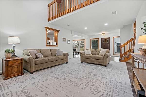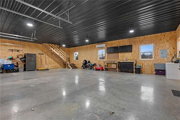 Your serene Oasis Awaits! This Beautifully Updated 1.5 Story Earth Contact Home with a 30x40 Detached Garage/ Workshop situated on 2.5 Acres offers the perfect combination of space, functionality, and privacy! Home features NEWER: HVAC, Carpet, Interior Paint, Updated Electrical, Ceiling fans and Light fixtures. The Spacious Open floor plan boasts Beautifully Kitchen with Granite Counters, SS appliances, abundance of cabinetry and flows seamlessly into the Dining area & Great Room. The former garage space has been thoughtfully renovated into a finished flex space ideal for entertainment, a play room, home office or gym (whatever fits your lifestyle). Large Main Level Primary suite offers Walk-in Closet & ensuite Bath. Upstairs, 3 generously sized Bedrooms + Full Bath provide plenty of space for family or guests. Outside, the property truly stands out with a stunning 3 Car detached Garage featuring a Loft, full electricity, heating and cooling that is perfect for a workshop, hobby space, or is ready for future customization. With acreage, extensive updates, and an incredible detached garage addition, this property offers versatility and value you don't often find!