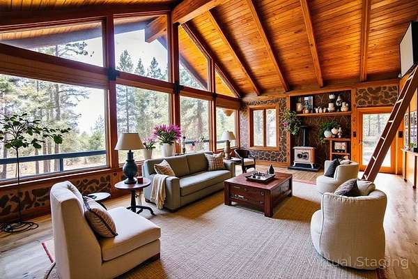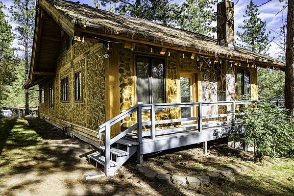 Nestled among the pines on 5 private acres, this one-of-a-kind cordwood-construction home blends artisan design with Montana character. The 2-bedroom, 2-bath layout features hand-crafted walls of stacked firewood and mortar, creating a warm, organic feel throughout. A vaulted living area with a loft adds openness and charm, while a versatile bonus room offers space for guests, a studio, or a home office. Thoughtfully built for those who value craftsmanship and connection to nature, the home is surrounded by tall timber, native wildlife, and the quiet rhythm of country living. The property includes a three-car garage, level ground for horses or gardens, and endless potential for your own creative touch, all just a short drive to Florence and Missoula.