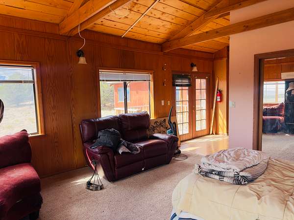 This 3 bed, 2 bath 2,310 SF mountain fixer with an 884 SF attached garage is a rare chance to build instant sweat equity. Home needs a new roof and other updates and finishes but features circular ceiling beams, a semi-open floor plan, oak kitchen cabinetry, tile floors, and wood flooring in the living areas. Set among towering ponderosa, ancient piñon and juniper with Sangre de Cristo Mountain views, just 20 minutes from Westcliffe/Silver Cliff.
