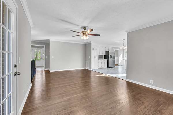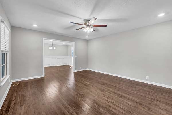 Classic wood flooring throughout living spaces & bedrooms on the main floor.