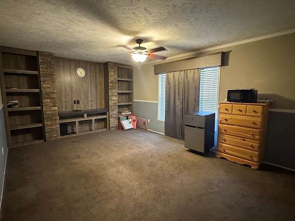 Spacious and inviting! This 4-bedroom, 2-bath home sits on 2.1 acres of partially wooded land within the Chatham school district, offering the perfect blend of comfort and privacy. Inside, you'll love the split floor plan that provides space for everyone, featuring both a living room and a separate family room complete with a built-in entertainment center--ideal for relaxing or hosting gatherings. The open-concept kitchen, dining, and living area creates a seamless flow for everyday living & entertaining. Step outside and enjoy the peaceful setting with plenty of room to roam, garden, or simply unwind. An outdoor storage building with two lean-tos adds valuable space for tools, equipment, or hobbies. Sold as-is. *Drone photos may include other surrounding properties.*