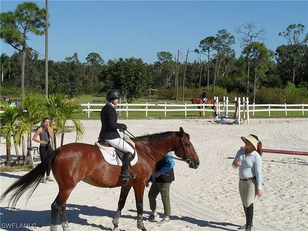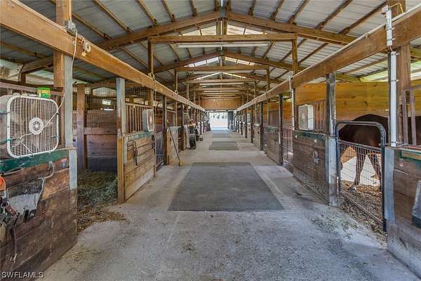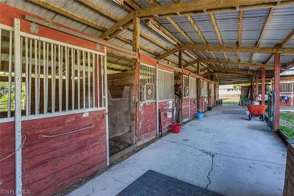 Nearly 5 ACRE HORSE FARM! Ride horses to your heart's content in this lovely rural setting among estate homes within 4 miles of downtown Fort Myers. Come home to an ever expanding equestrian community. Secluded, yet easy access to shows in Wellington or at Fox Lea Farm. Build new or update existing home/barn. This fabulous fenced acreage includes a rental apartment above the stables, 30 stall horse stables, tack rooms, feed barn, equipment barn, dual wash racks, wood fenced paddocks, and more! So much potential!