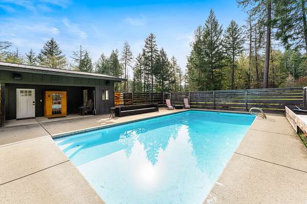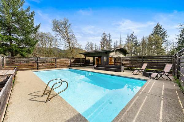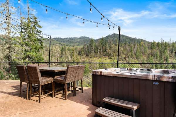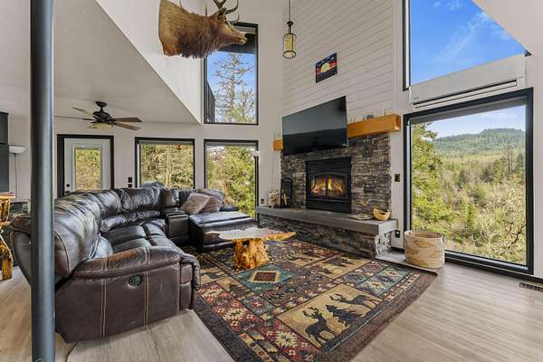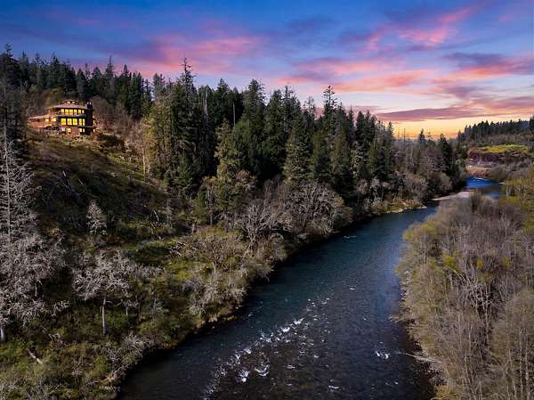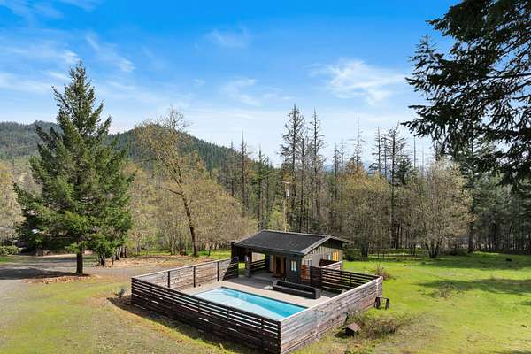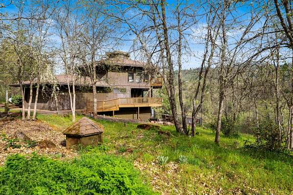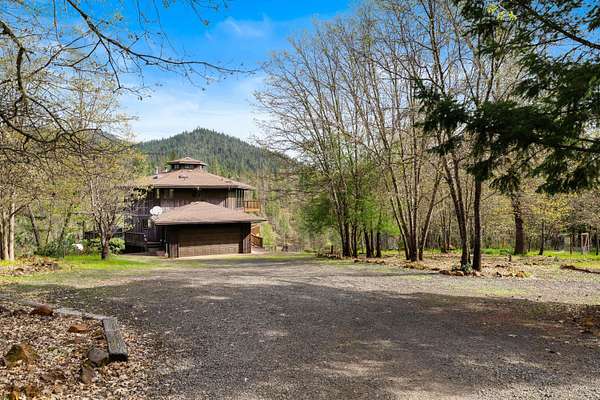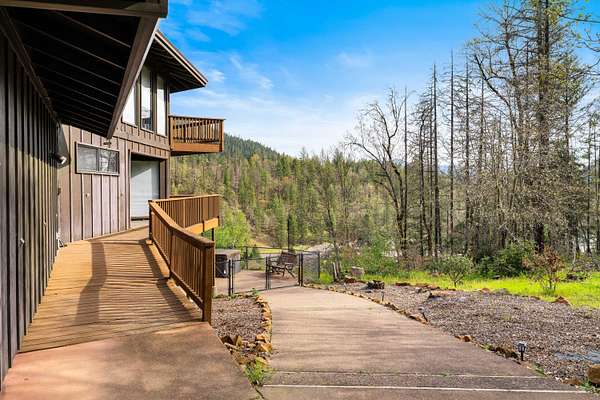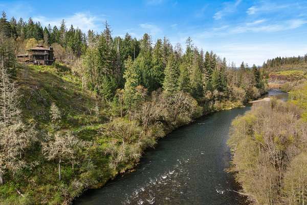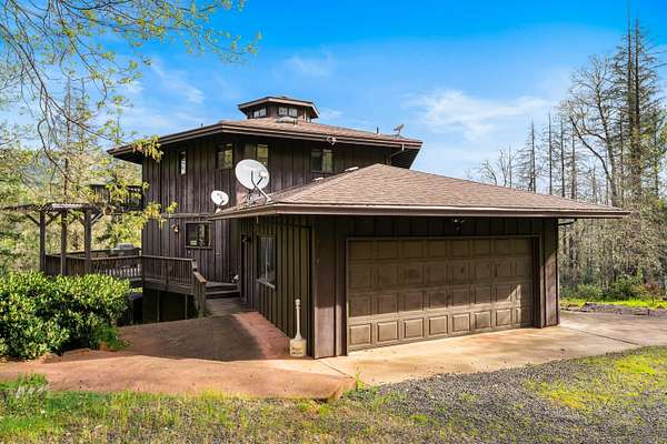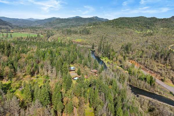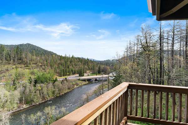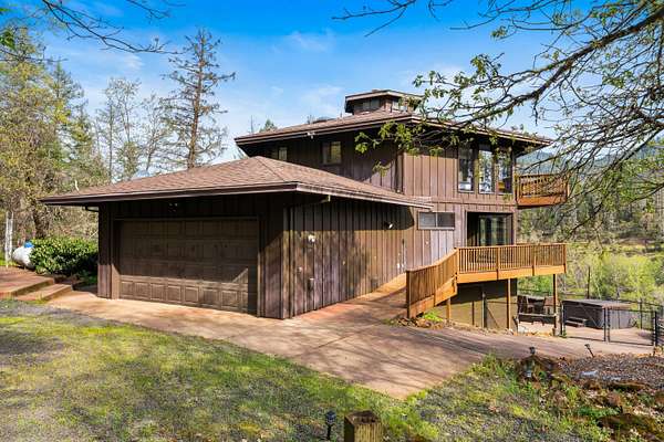 Nest with the Eagles on nearly 11 acres overlooking the mighty Rogue River! This stunning 3BR/4BA retreat sits atop a treed knoll with breathtaking river and mountain views from every angle. Watch the salmon spawn from your back deck, unwind in the hot tub with a cool breeze, and enjoy end-of-road privacy that makes this property truly one of a kind. Soak in the scenery from multiple private decks and balconies, or cool off in the solar-heated in-ground pool. The main level features soaring open ceilings, a wood-burning fireplace, and a galley kitchen, while the upper level offers two master suites plus a third bedroom. The finished daylight basement is perfect for a game room or guest quarters, and a private pool house with full bath sits just steps away. All of this within moments of world-class boating, recreation, and trails. Nearly 11 fenced and gated acres of peace and tranquility, yet just minutes from town. This is Southern Oregon living at its finest!