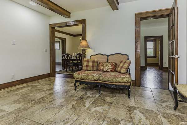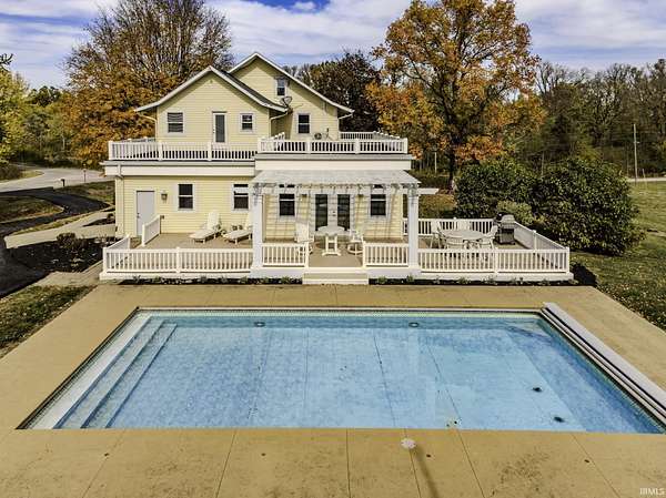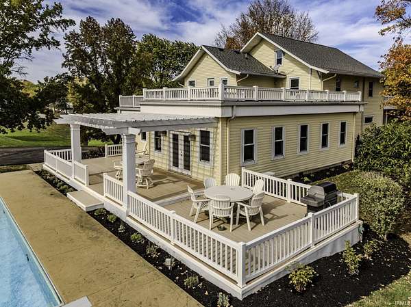 This spacious, three-story traditional home welcomes you through the front door, off a beautiful front porch with new ceiling fans, into a charming living room with built-in cabinetry. A great room offers a piano window and pocket doors, leading to a large formal dining room with French doors. These doors open to a spacious family room, complete with a gas log fireplace and French doors leading to the deck area and inground pool. The large eat-in kitchen is a chef's delight, featuring a generous center island with a breakfast bar, beautiful cherry cabinets, and solid-surface countertops. This floor also includes a den, utility area, and a newly remodeled full bathroom. The second floor offers four bedrooms, including a master suite with a large, newly remodeled master bath featuring a double vanity, soaking tub, and stand-up shower, plus a great walk-in closet. An additional newly remodeled bathroom is also located on this floor. The third floor provides a large bedroom with a new mini-split system for heating and air. Recent updates enhance the property's appeal, including a new roof (including a rubber roof) just three weeks old, a newer fire pit, and a newer dock. A 125-gallon buried propane tank serves the fireplace and a gas grill on the deck by the swimming pool. In addition, the property offers two separate four-car detached garages. This is a must-see property, as its beauty from front to back is beyond imagination!
