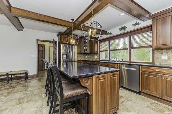 - Ceiling Fan(s), Ceilings-Beamed, Closet(s) Walk-In, Countertops-Solid Surf, Deck On Waterfront, Dishwasher, Dryer Hook Up Electric, Eat-In Kitchen, Formal Dining Room, Foyer Entry, Garage Door Opener, Garden Tub, Great Room, Kitchen Island, Main Floor Laundry, Natural Woodwork, Porch Covered, Porch Open, Range/Oven Hook Up Elec, Refrigerator, Stand Up Shower, Tub and Separate Shower, Tub/Shower Combination, Water Heater Electric, Water Softener-Owned, Window Treatments