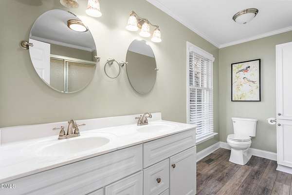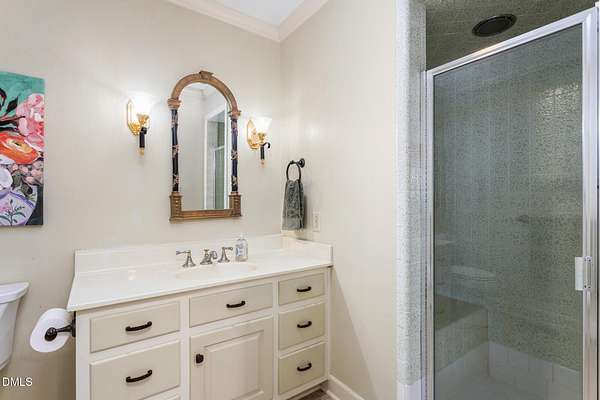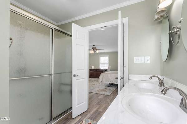 - Ceiling Fan(s), Crown Molding, Eat-In Kitchen, Entrance Foyer, Granite Counters, Living/Dining Room Combination, Open Floorplan, Primary Downstairs, Second Primary Bedroom, Separate Shower
