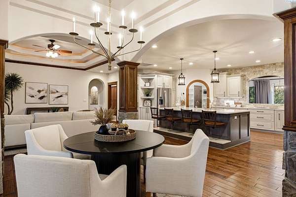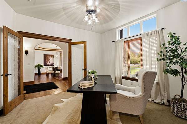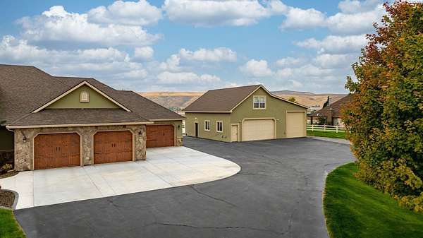 MLS# 288536 Welcome to this Country Estate in Exclusive Sunrise Canyon, a serene 5-acre retreat that blends timeless craftsmanship with resort-style amenities. The custom 5,382 sq. ft. home makes a grand impression with a sweeping staircase and formal living with dramatic full-stone fireplace. An updated kitchen with brick accents opens to a warm family room, while the main-floor primary suite offers a spa-inspired bath, his and hers closets, and its own private laundry. Upon entry, you'll find double his-and-hers offices and a formal dining room, while the separate east wing of the main floor features four additional spacious bedrooms with two Jack-and-Jill baths. Upstairs, a loft with coffered ceilings overlooks the living area, complemented by an additional en-suite bedroom and a large bonus room with Juliet balcony. Outdoor living is elevated with a climatized sunroom and custom fireplace, plus a backyard designed for year-round enjoyment--featuring a hot tub, heated pool with automatic cover, firepit, lighted sport court, garden, and enclosed pastures. A spacious shop with roll-up door, full bathroom, and climatized upper bonus area offers the perfect space for hobbies, fitness, or a studio, while the RV bay and car lift are ideal for enthusiasts. Peaceful, private, and luxurious, this Sunrise Canyon estate is truly one of a kind.