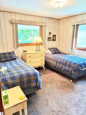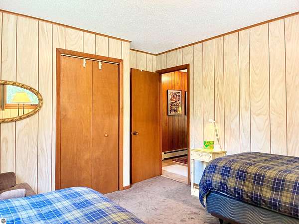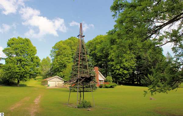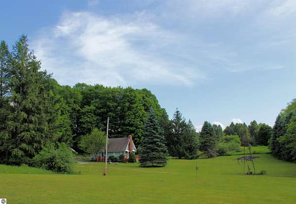 Nestled on 40 acres of pristine high ground and partially wooded land, this beautiful 3-bedroom chalet offers the perfect blend of rustic charm and modern comforts. Just minutes from tranquil streams and the pristine waters of Crystal and Platte Lakes, this expansive property provides an unparalleled opportunity for nature lovers, outdoor enthusiasts, and those seeking a peaceful retreat. High, vaulted ceilings create an inviting, spacious atmosphere. A brick fireplace adds to the warmth of the living area, making it the perfect spot to unwind after a day of outdoor adventures. Whether you enjoy fishing, kayaking, or simply relaxing by the water, both Crystal and Platte Lakes are just a short drive away, offering endless recreational opportunities. Perfect for full-time living, seasonal use, or as a vacation getaway. If you're looking for privacy, peace, and proximity to some of Michigan's most beautiful lakes and outdoor recreation areas, this chalet is a must-see.