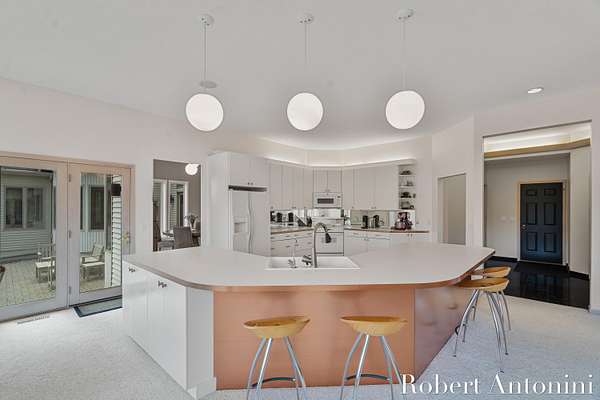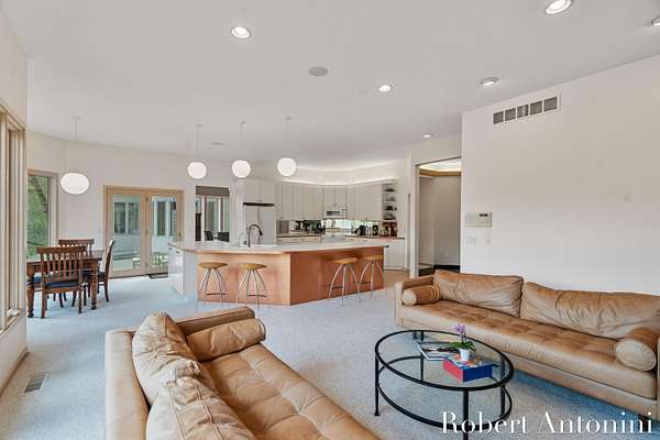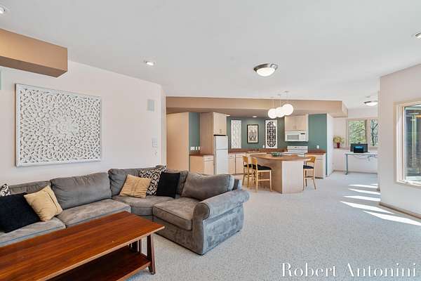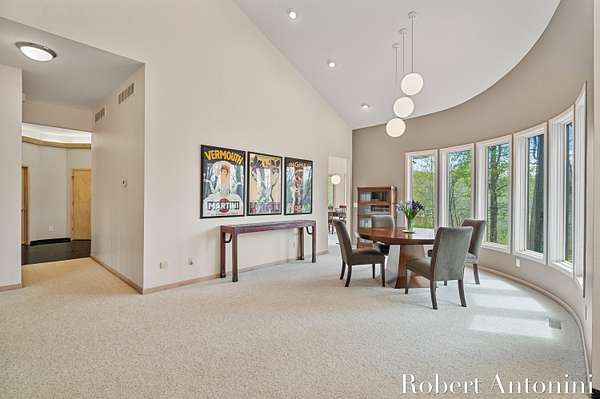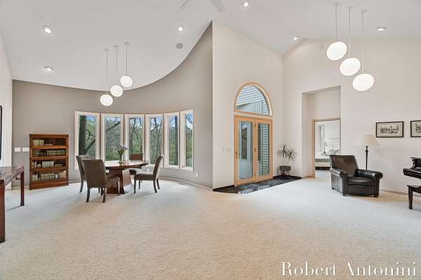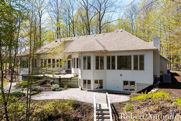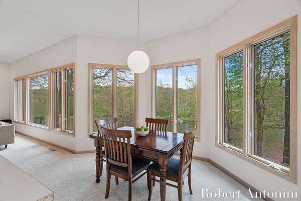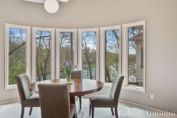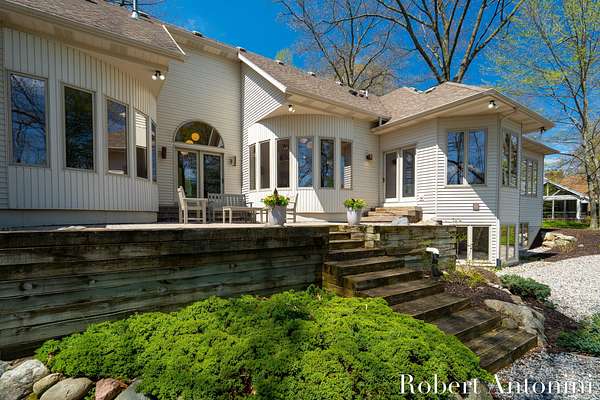 Welcome to Thornapple River Living, featuring 144 feet of water frontage on a 1.9-acre lot. This private setting showcases a custom-designed home with outstanding river views. The architectural design ensures the residence offers scenic vistas of the river from multiple areas within the home.