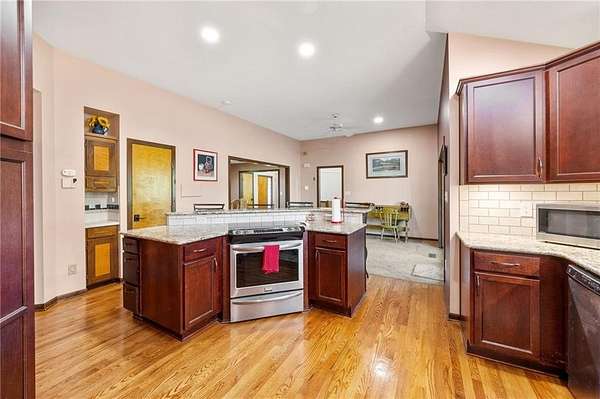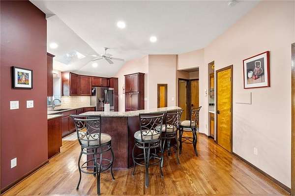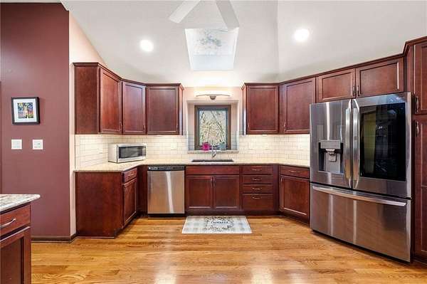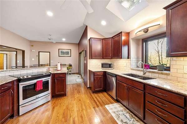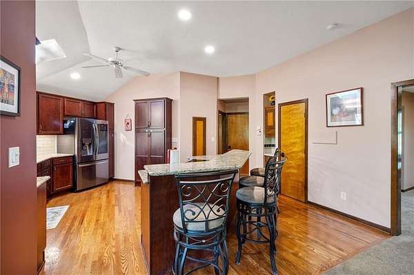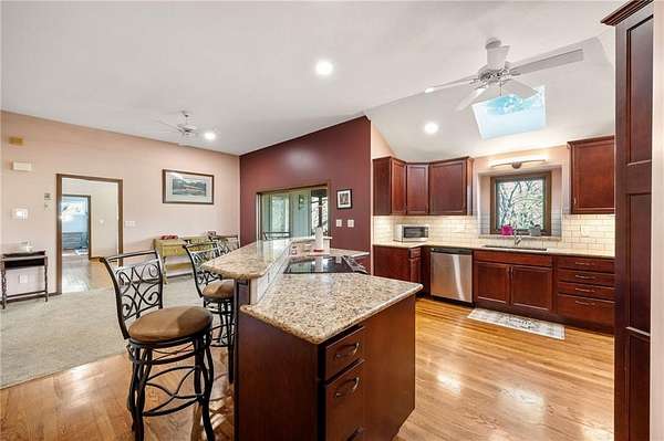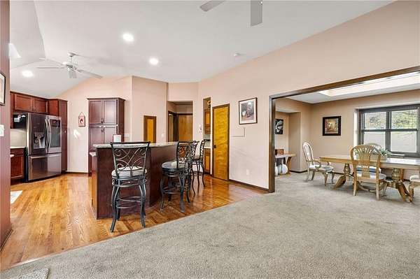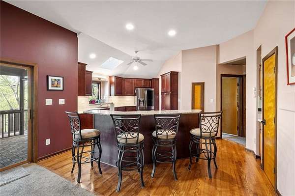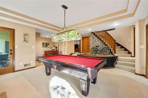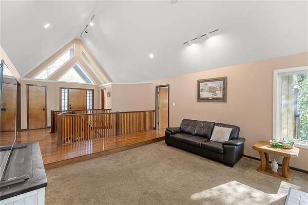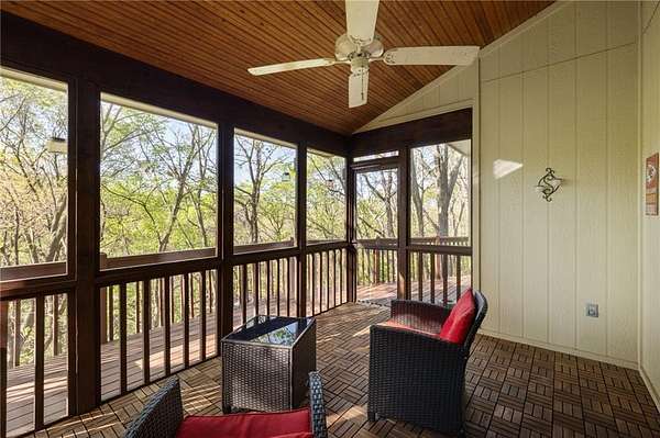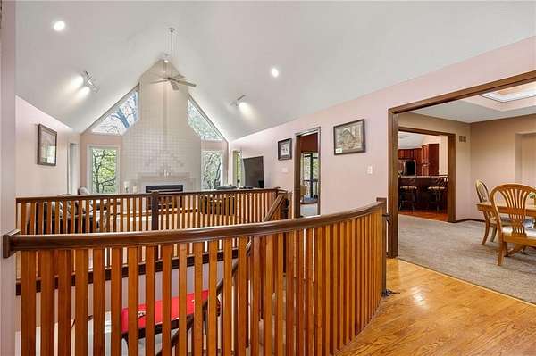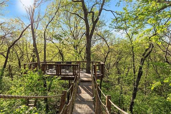 If you're searching for a truly exceptional home, 7206 Larson is it. Tucked quietly at the end of a small horseshoe street in a quiet neighborhood, this custom-built 1.5 story reverse ranch offers unmatched seclusion and character. Built in 1992 and perfectly maintained, this rare opportunity sits on a beautifully wooded 1.6-acre lot that feels like your own private nature sanctuary. With 4 bedrooms, 3 full baths, and 2 half baths, there's plenty of space to entertain and unwind. The open flow connects the living area, dining room, and kitchen while vaulted ceilings and large windows showcase sweeping views of the park-like backyard. Step outside to enjoy two decks overlooking mature trees and wildlife - deer, turkey, and birds are frequent guests. A custom treehouse, completed in 2022, adds even more charm and a sense of retreat. The primary suite on the main level features a remarkable en-suite bath designed for two, with dual vanities, dual water closets, separate walk-in closets, and a shared jetted tub and walk-in shower connecting the spaces. Down the curved staircase, discover a lower level built to impress - an indoor atrium with turf and stone accents opens into a spacious family room with a gas fireplace and three additional bedrooms surrounded by private wooded views. Ample storage and thoughtful design make every corner functional and inviting. Recent updates include a new Air Conditioning unit (2025), tankless water heater, water softener, toilets, faucets (2021), kitchen upgrades (2018), and garage resealing (2020). This home stands as one of the most unique and well-kept properties in the area. Also to note the property is in close proximity to the Rock Island Trail. Rarely does a home blend craftsmanship, privacy, and location like this. Schedule your private showing today before this extraordinary home is gone.