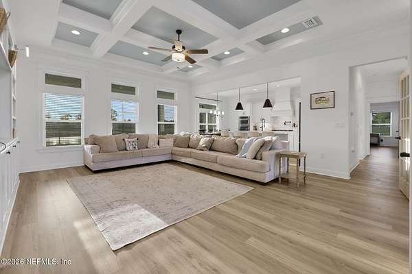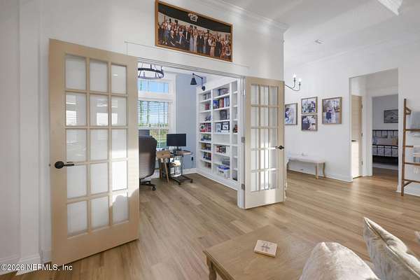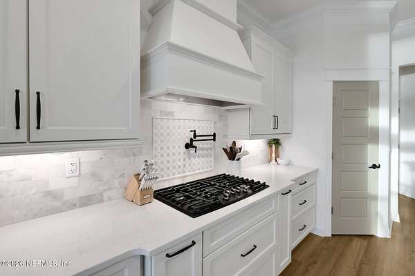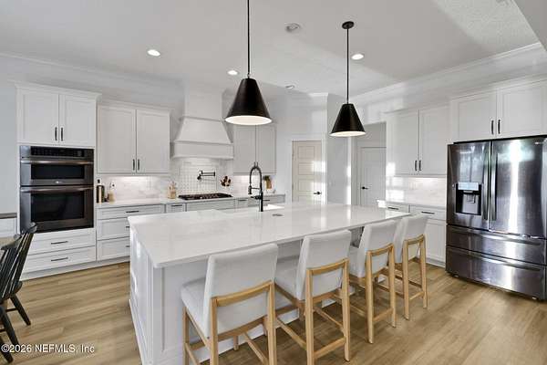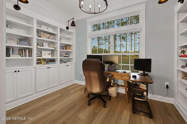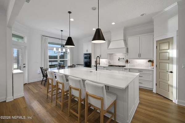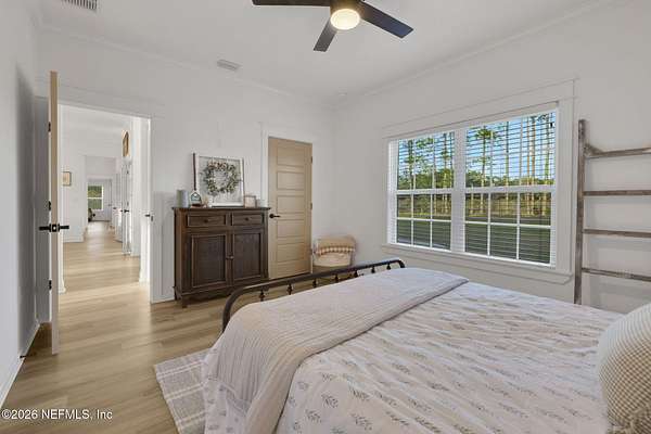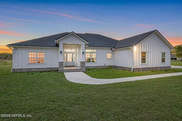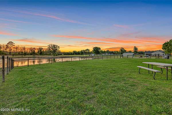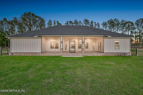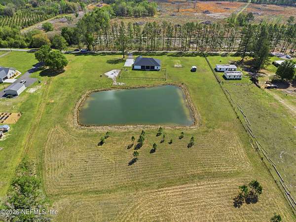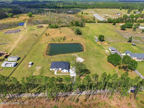 Enjoy true country living in Macclenny, where privacy and open space come together on over 9 acres of peaceful surroundings. This custom-built home offers a welcoming Craftsman-style exterior and a bright, thoughtfully designed interior filled with natural light and quality upgrades throughout. The open-concept layout creates effortless flow between living, dining, and kitchen spaces. The kitchen is designed for both function and style, featuring 42-inch cabinetry with upper extensions, quartz countertops, a spacious island with abundant prep space, designer backsplash, and a convenient pot filler ideal for everyday cooking or entertaining. In addition to the main living areas, an added office space provides the perfect setup for homework, remote work, or daily organization offering convenience without sacrificing privacy. Step outside to the large, covered and screened lanai overlooking the fenced backyard and tranquil pond -- the perfect setting to relax and enjoy the quiet beauty of your property. A versatile fourth bedroom with a half bath and private exterior access offers flexible use as a guest suite, office, game room, or private retreat. The secondary bathroom showcases custom details including listello and mosaic accents and pebble tile finishes. The owner's suite provides a spacious and serene escape, complete with a generously sized bedroom and a beautifully appointed bath featuring carefully selected finishes. If you're seeking space, comfort, and refined country living -- this property delivers. This property allows one large farm animal (horse, cow, donkey per usable acre, no swine or similar kind, no animal breeding operation of any kind, no more than than two outside dogs or cats and no more than one rooster.