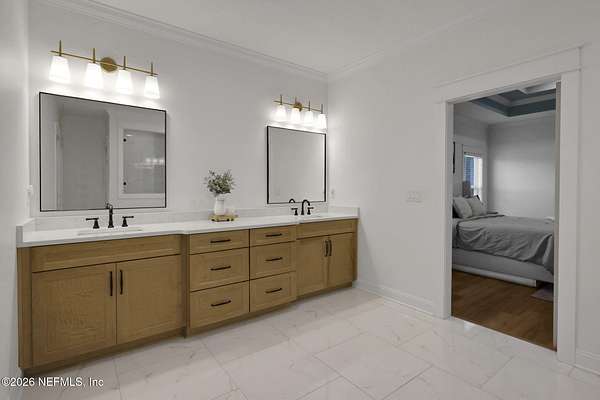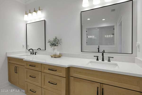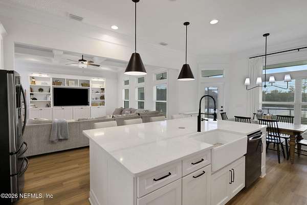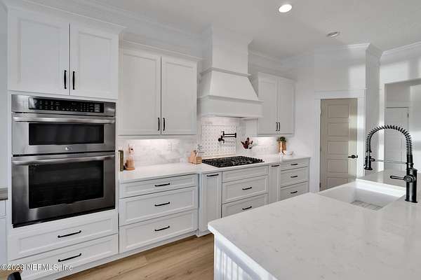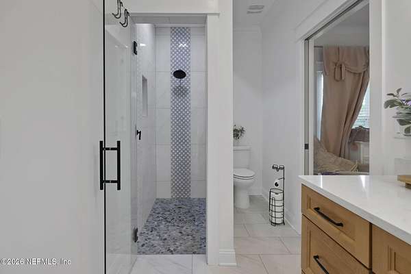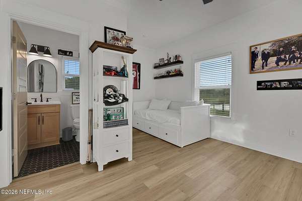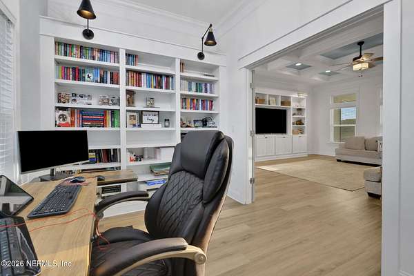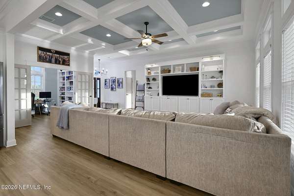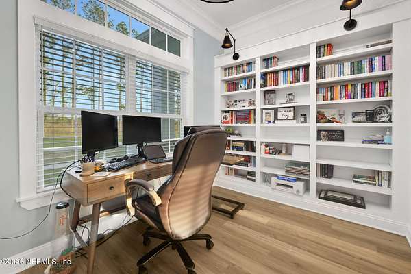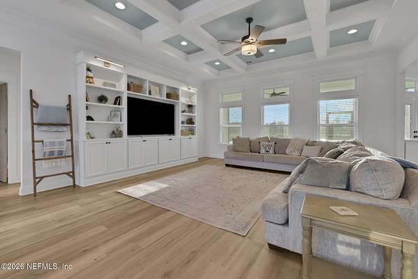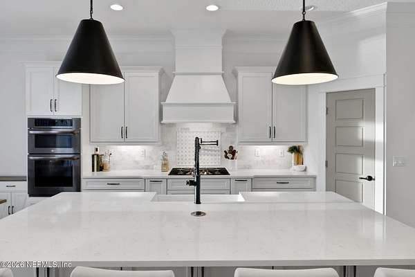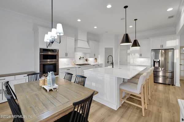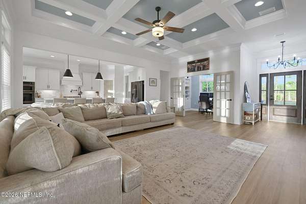 Enjoy true country living in Macclenny, where privacy and open space come together on over 9 acres of peaceful surroundings. This custom-built home offers a welcoming Craftsman-style exterior and a bright, thoughtfully designed interior filled with natural light and quality upgrades throughout. The open-concept layout creates effortless flow between living, dining, and kitchen spaces. The kitchen is designed for both function and style, featuring 42-inch cabinetry with upper extensions, quartz countertops, a spacious island with abundant prep space, designer backsplash, and a convenient pot filler ideal for everyday cooking or entertaining. In addition to the main living areas, an added office space provides the perfect setup for homework, remote work, or daily organization offering convenience without sacrificing privacy. Step outside to the large, covered and screened lanai overlooking the fenced backyard and tranquil pond -- the perfect setting to relax and enjoy the quiet beauty of your property. A versatile fourth bedroom with a half bath and private exterior access offers flexible use as a guest suite, office, game room, or private retreat. The secondary bathroom showcases custom details including listello and mosaic accents and pebble tile finishes. The owner's suite provides a spacious and serene escape, complete with a generously sized bedroom and a beautifully appointed bath featuring carefully selected finishes. If you're seeking space, comfort, and refined country living -- this property delivers. This property allows one large farm animal (horse, cow, donkey per usable acre, no swine or similar kind, no animal breeding operation of any kind, no more than than two outside dogs or cats and no more than one rooster.