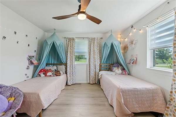 Fully Renovated Mid-Century Home on 4.45 Acres with BRAND NEW ROOF! Experience modern living with timeless charm in this beautifully updated mid-century home set on nearly 5 acres of peaceful countryside. Every square inch of this 3-bedroom, 2-bathroom home-including a dedicated office-has been thoughtfully renovated with exceptional attention to detail. Discover a stunning, custom-designed kitchen featuring flat-front walnut cabinetry, quartz countertops, deep roll-out drawers, open shelving, a built-in coffee bar, & cozy built-in dining seating. Enjoy premium Italian-made Bertazzoni appliances-including a conductive cooktop-that blend luxury with performance.The updates continue throughout the home with new, beautiful LVP flooring, fresh paint, modern baseboards, updated recessed & designer lighting, and new ceiling fans. Electrical wiring has been completely redone, & the home features an updated A/C unit. Approx. 24x30 ft shop w/heat & air & framed for garage doors, if desired! Seller offering $5K for hail-damaged siding replacement. Eligible for RD financing.