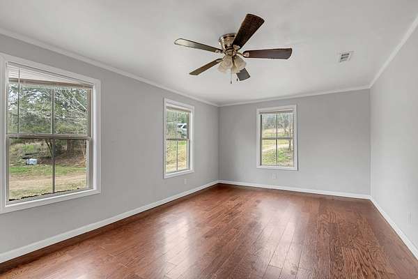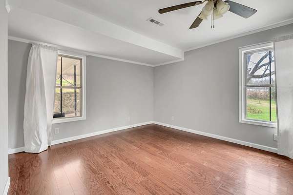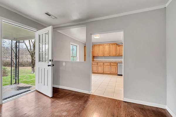 Outdoors, the gently rolling acreage is framed by mature trees and open green space, creating a serene setting for relaxation, recreation, or gatherings under the wide Tennessee sky. This property captures the charm of country living while maintaining modern updates and convenience.